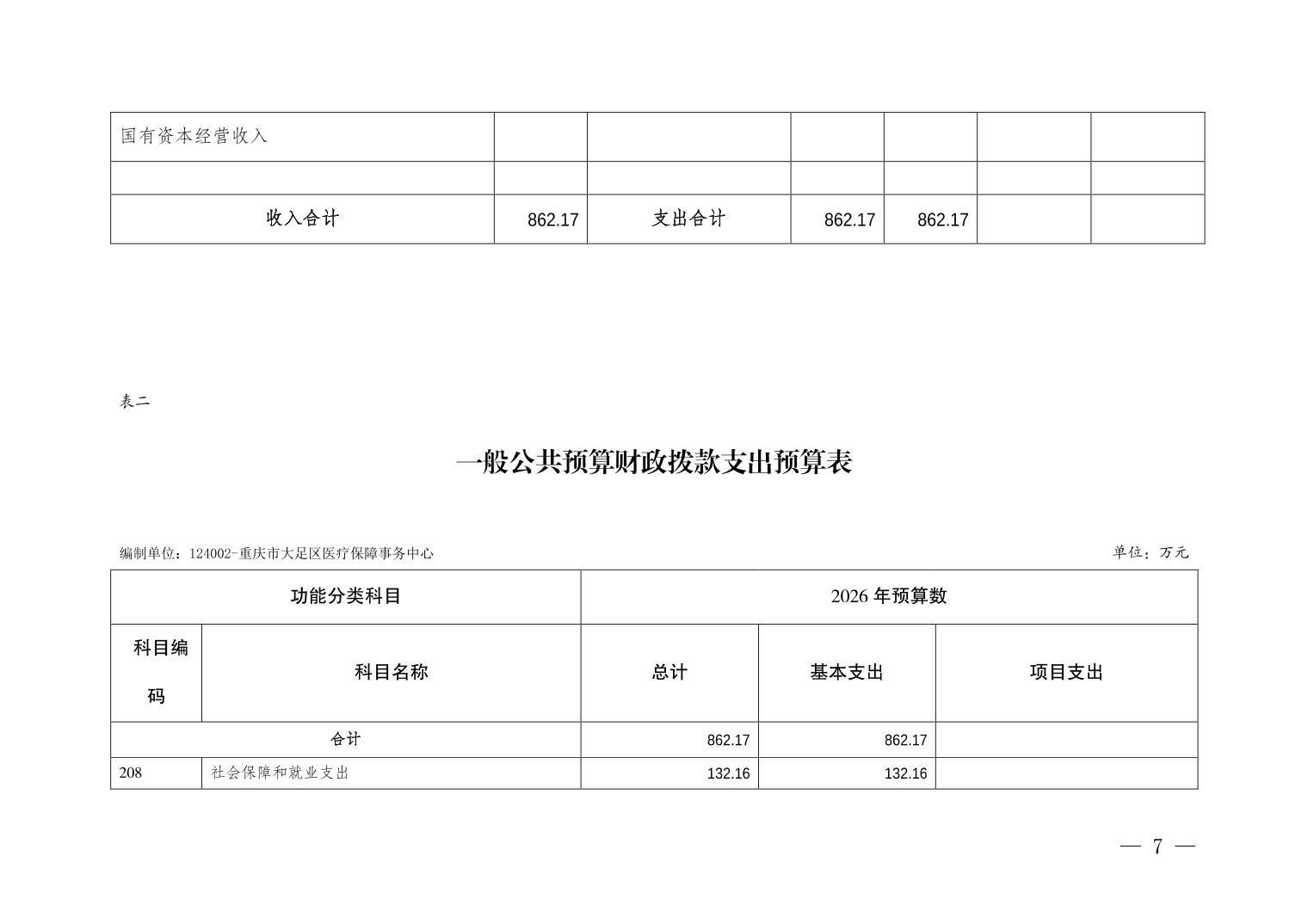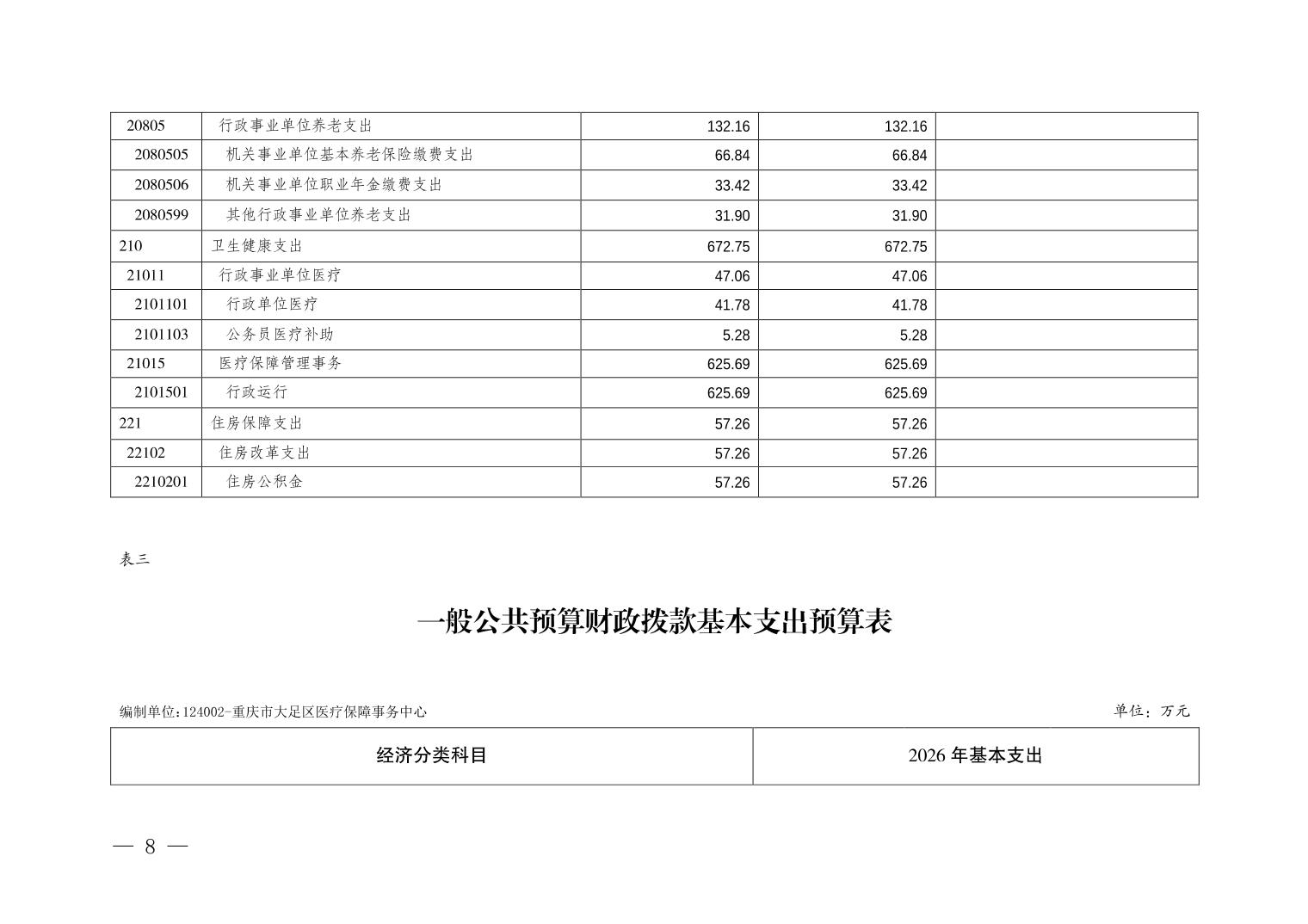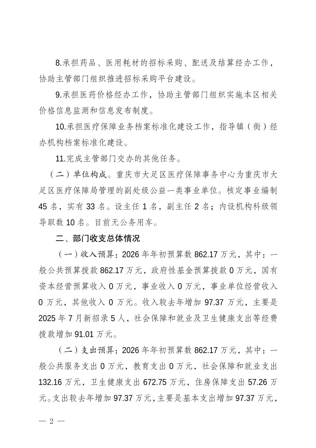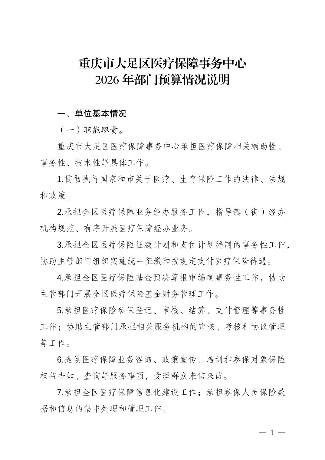 重庆市大足区医疗保障事务中心2026年部门预算情况说明