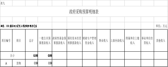 2.政府采购情况。所属各预算单位政府采购预算总额0.99万元:政府采购货物预算0.99万元、政府采购工程预算0万元、政府采购服务预算0万元;其中一般公共预算拨款政府采购0万元:政府采购货物预算0.99万元、政府采购工程预算0万元、政府采购服务预算0万元。