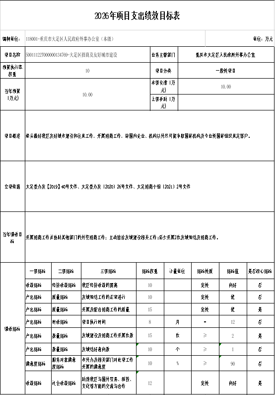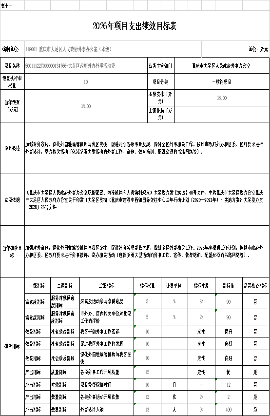 重庆市大足区人民政府外事办公室2026年部门预算情况说明