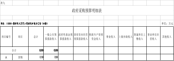 2.政府采购情况。所属各预算单位政府采购预算总额0.99万元:政府采购货物预算0.99万元、政府采购工程预算0万元、政府采购服务预算0万元;其中一般公共预算拨款政府采购0万元:政府采购货物预算0.99万元、政府采购工程预算0万元、政府采购服务预算0万元。
