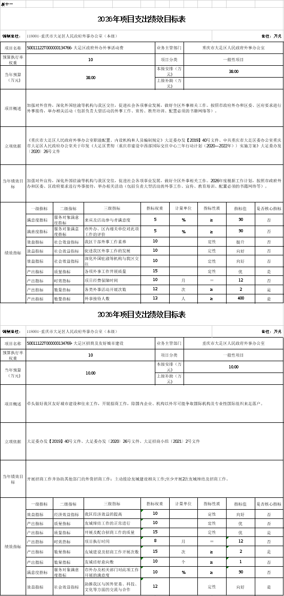 重庆市大足区人民政府外事办公室(本级)2026年单位预算情况说明