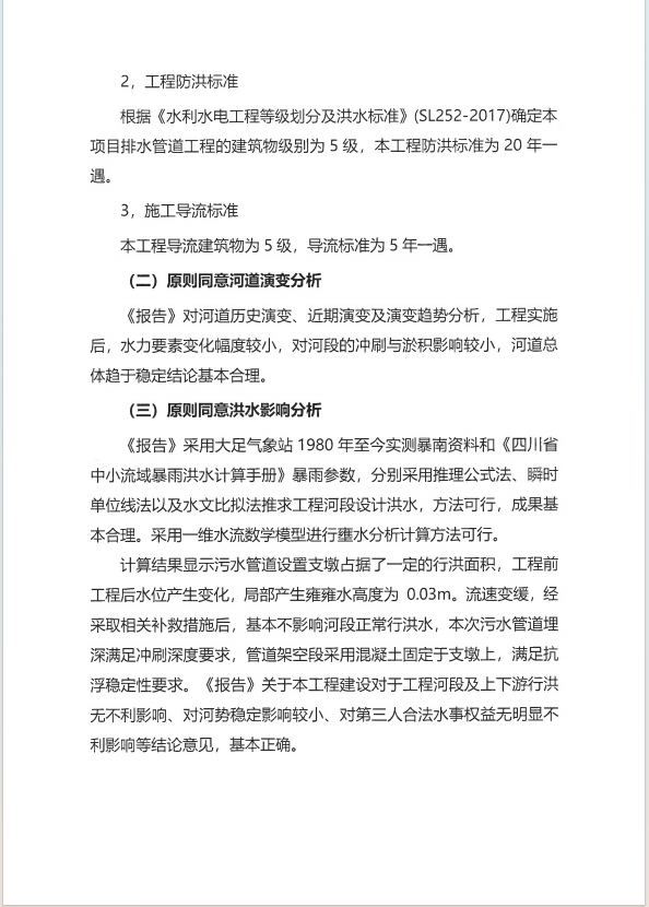 一、同意工程河段评价防洪标准采取20年一遇,工程防洪标准采取20年一遇。