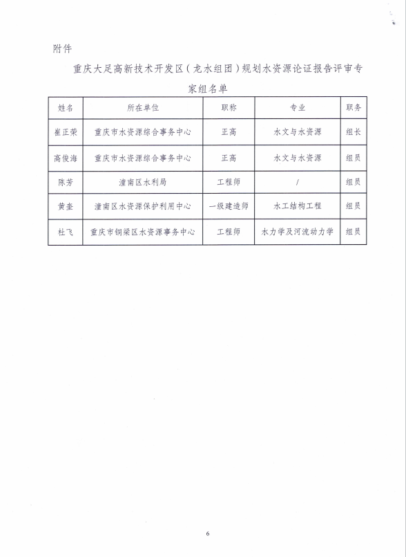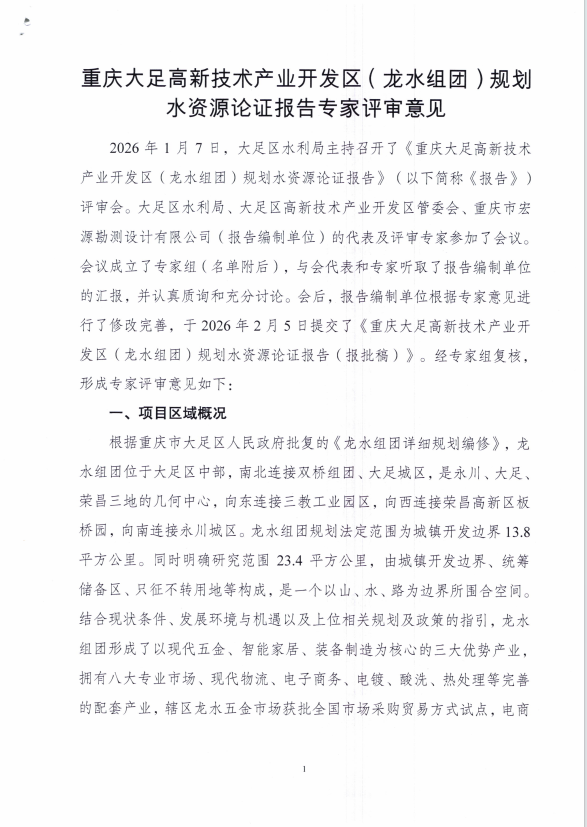 附件:《重庆大足高新技术产业开发区(龙水组团)规划水资源论证报告》专家评审意见