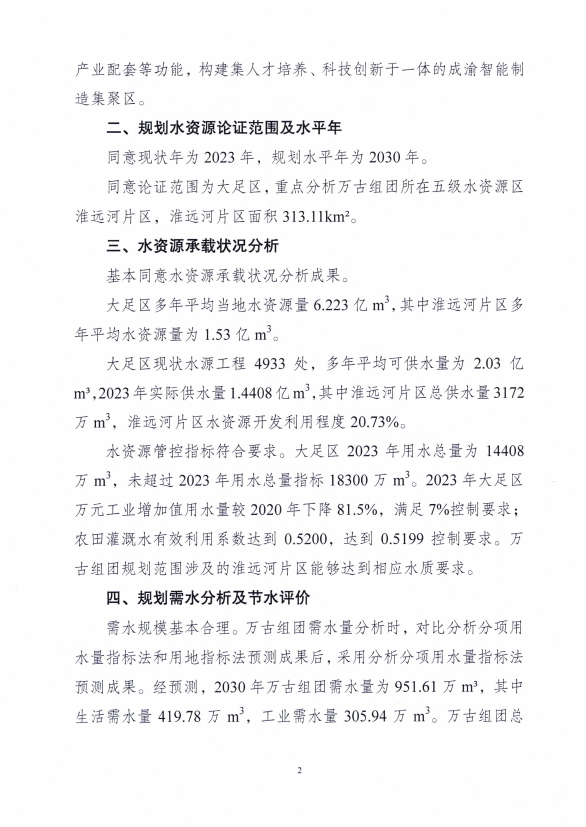 附件:《重庆大足高新技术产业开发区(万古组团)规划水资源论证报告》