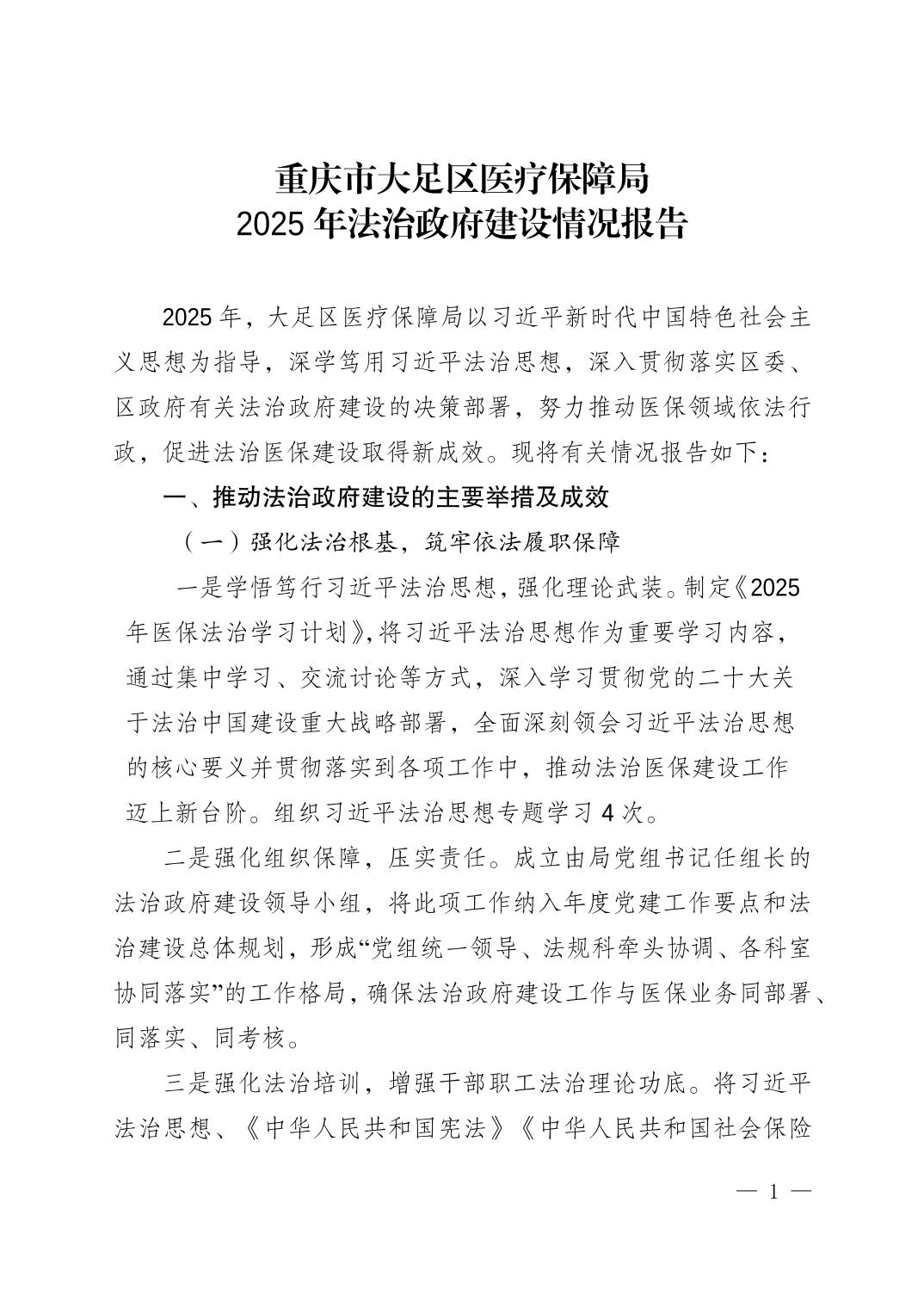 重庆市大足区医疗保障局2025 年法治政府建设情况报告