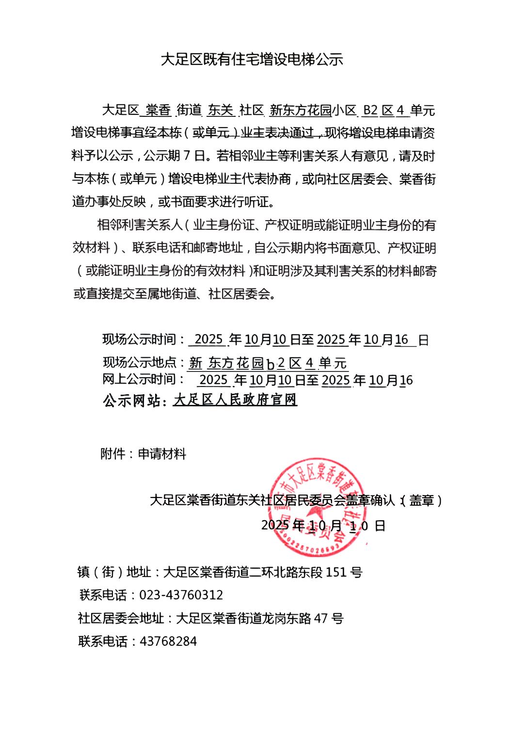 大足区既有住宅增设电梯公示(新东方花园B2区4单元)