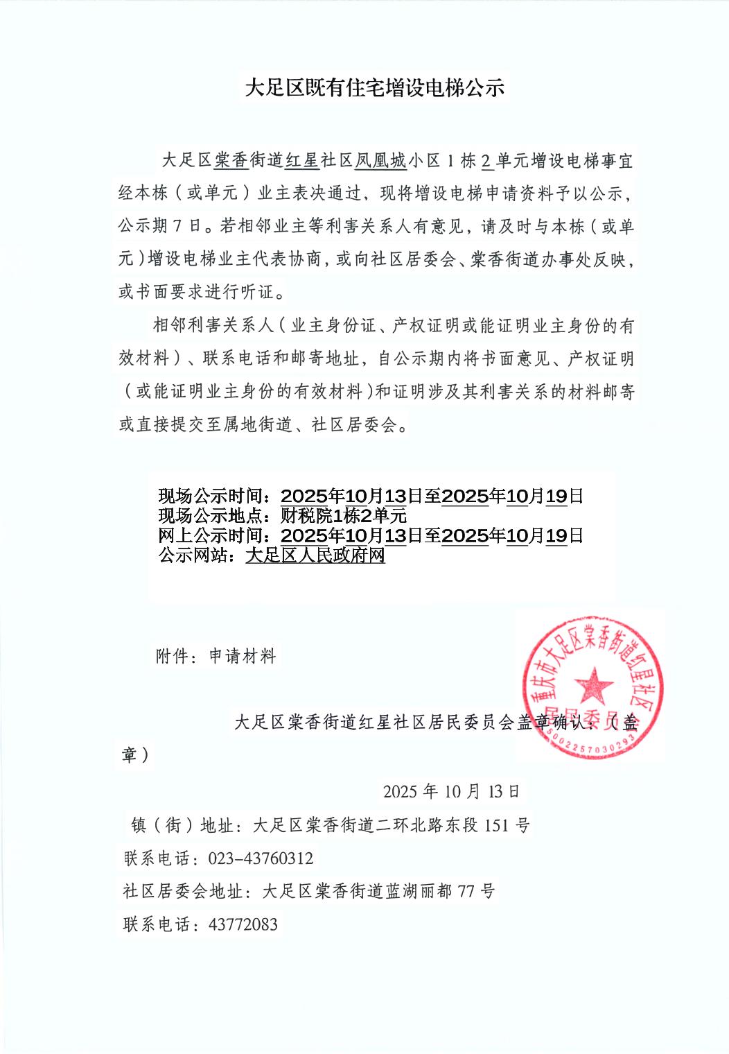 大足区既有住宅增设电梯公示(凤凰城1栋2单元)