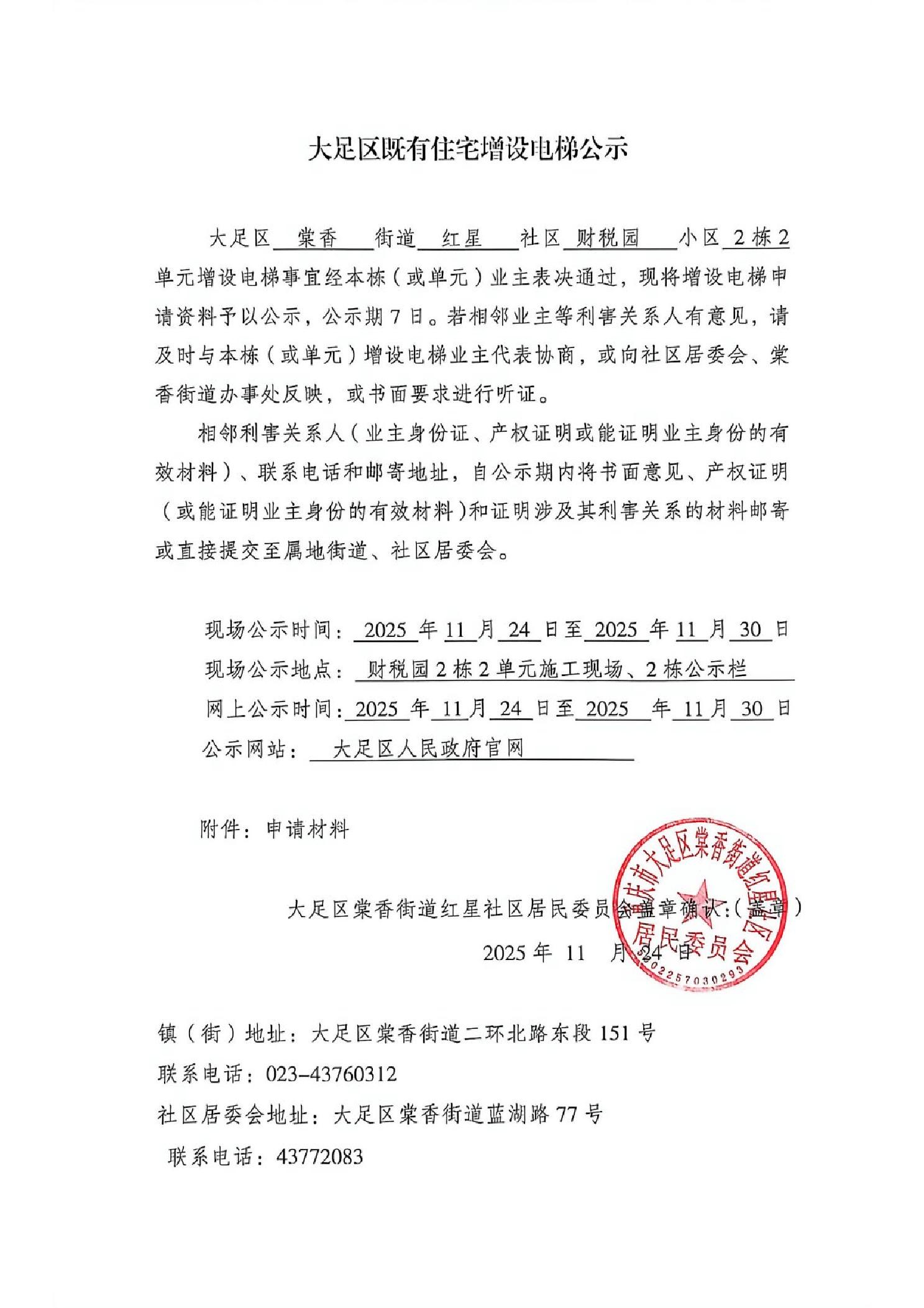 大足区既有住宅增设电梯公示(财税苑2栋2单元)