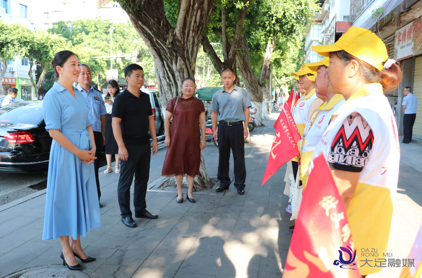 “大家辛苦了,感谢你们在创文工作中的付出。”刘青青一行先后前往大足汽车站红绿灯路口、体育中心红绿灯路口、五星大道大转盘路口等地,慰问奋战在高温一线的文明劝导员和执勤交警。每到一处,刘青青都与一线工作人员亲切交谈,感谢他们为文明创建工作付出的辛勤汗水和不懈努力,叮嘱大家一定要做好高温期间的防暑降温工作,保证身体健康和作业安全。同时,还勉励大家继续围绕全区创文工作,持续抓好人行道引导、重点巡查、宣传教育等工作,确保创文工作取得实效。