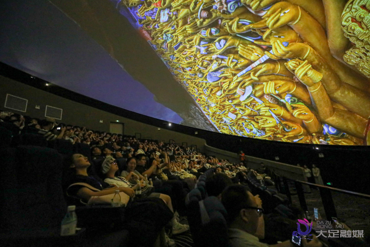 上午9时,专家学者们在大足石刻游客中心观看8K球幕电影《大足石刻》,精美的画面、宏大的视角引得不少观众连连称赞。“我发现《大足石刻》一个非常关键的特点——它是‘oversized’的,球幕画面以夸张的尺度比例呈现摩崖造像,使整体产生极具张力的视觉冲击,一时间把大足石刻的精美与内在艺术魅力展现得淋漓尽致!很有创意,给我们非常大的启发。”浙江大学文化遗产研究院副院长李志荣说,基于数字化技术的球幕电影由来已久,而当前《大足石刻》球幕电影应用的数字技术是最新也是业内最为先进的,这次观影让她体会到新型数字化技术的迅猛发展,同时也更加确信数字化是文物活化的必然途径。