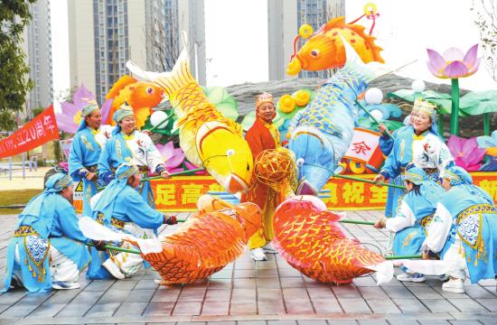 万古鲤鱼灯舞是大足区独具地方特色的灯棚类民间舞蹈,起源于南宋时期。目前,大足区已有万古鲤鱼灯舞市级非遗代表性传承人4名,鲤鱼灯舞队员近100名;近三年开展各类表演活动120余场,服务群众1.2亿人次;建成了室内面积300余平方米的“鲤鱼灯舞”传习所,让市民们能够“学起来,传下去”。