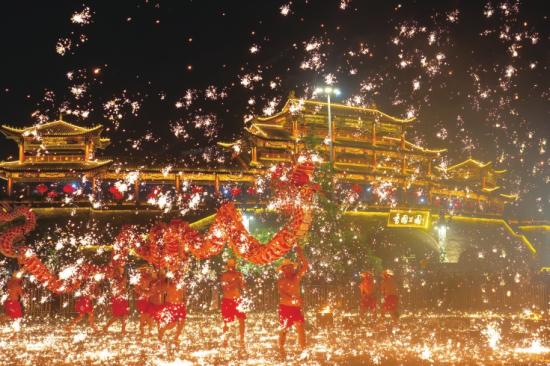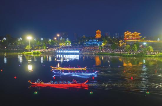 这个五一,大足的每一个夜晚都热闹非凡。香国公园妙善湖里桨影翻飞,夜龙舟如离弦之箭冲向终点。岸边,1500℃的滚烫铁水在空中化作万千金色铁花,激射而下、璀璨夺目。湖畔与水中的壮观景象紧紧抓住了市民和游客的眼球,人群中不时爆发出阵阵惊叹与欢呼。