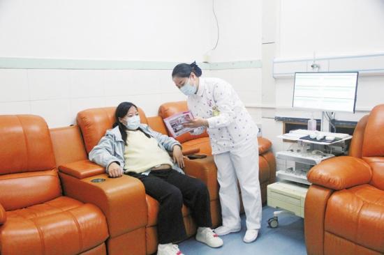医护人员为孕妇讲解孕产知识。