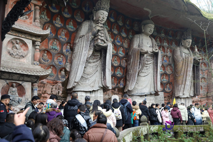 2025年1月30日,大年初二,宝顶山石刻景区里,游人如织。
