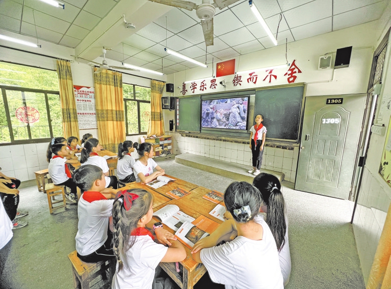 宝顶实验小学的孩子们正在学习《石刻小导游》。