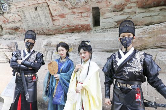 第一站:参观大足石刻文创园,看文创展品、国潮珠宝,体验大足石雕技艺;