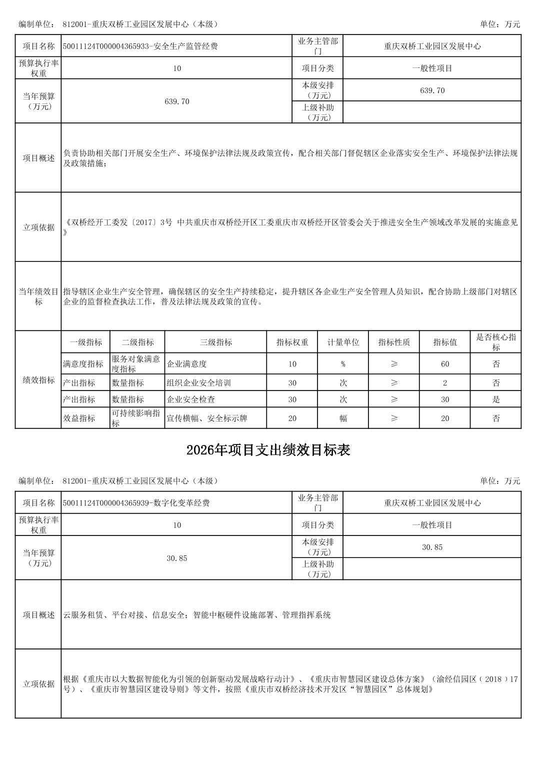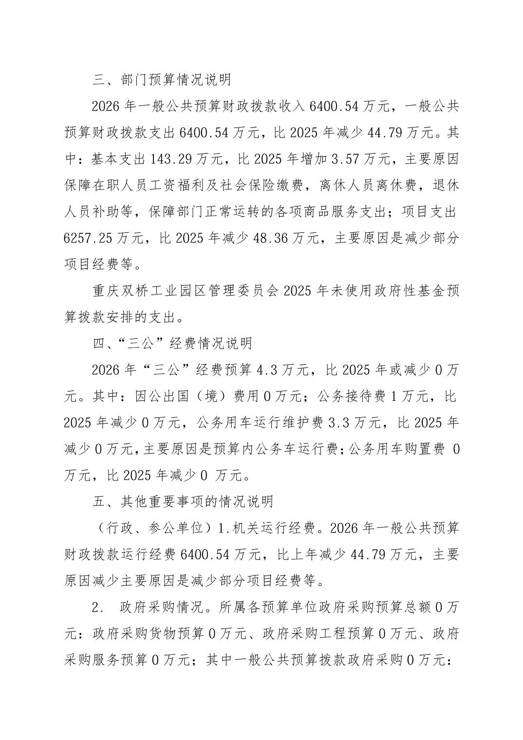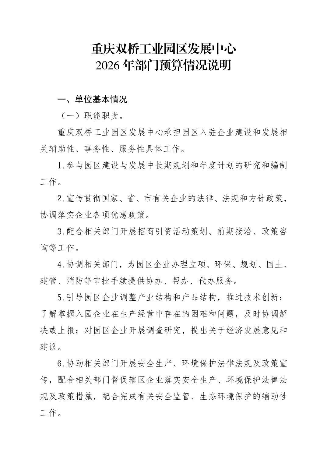 重庆双桥工业园区发展中心 2026 年部门预算情况说明