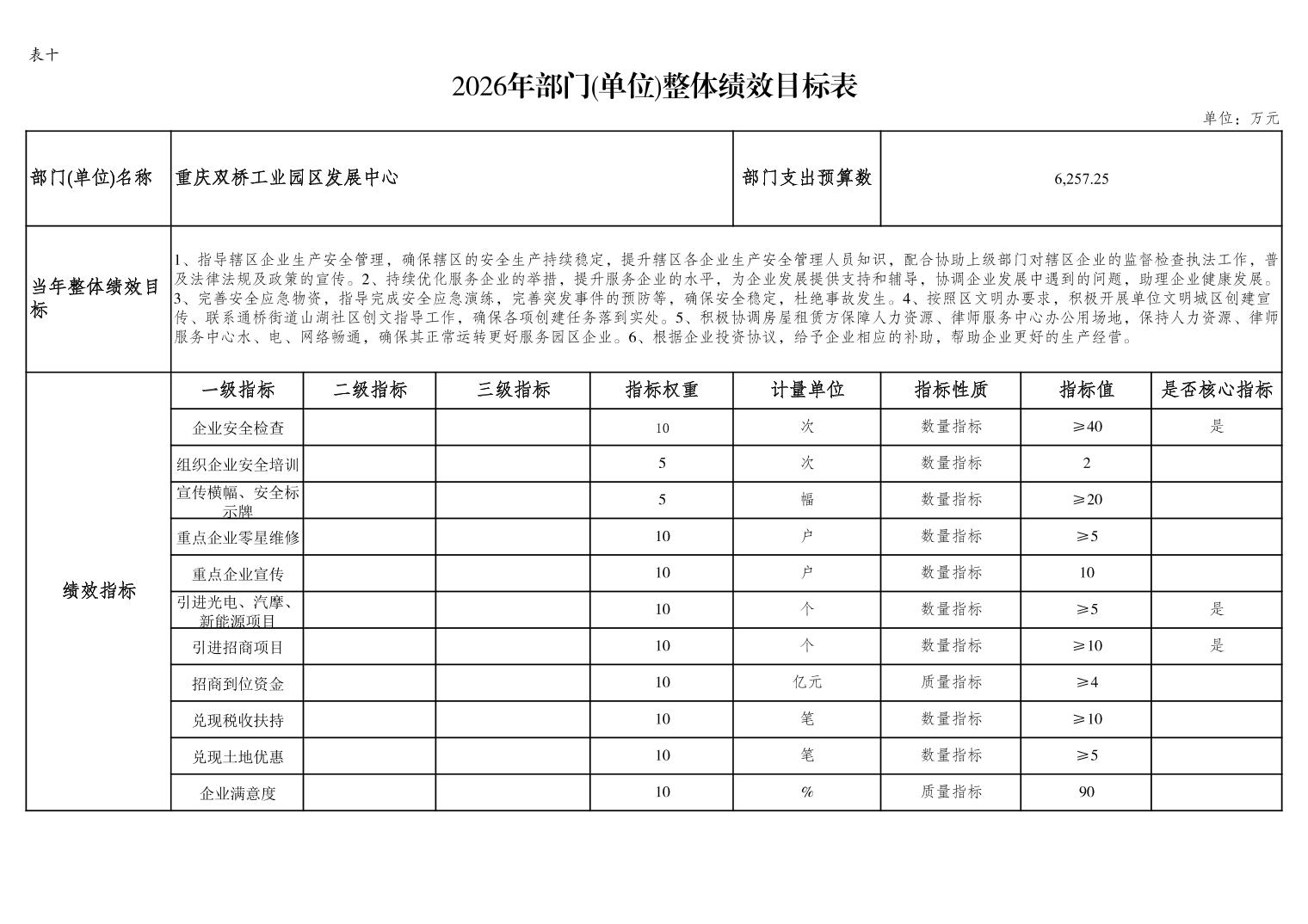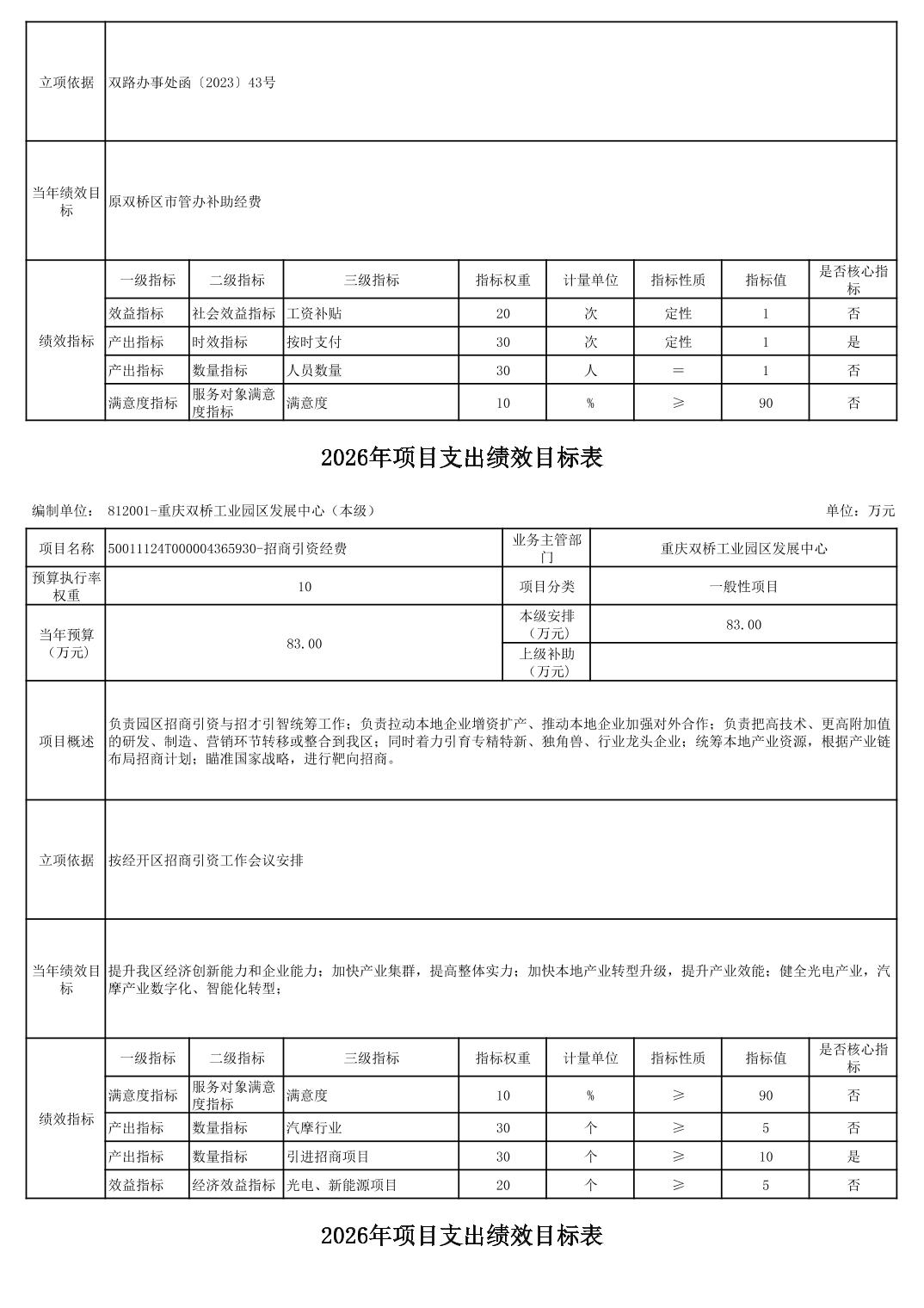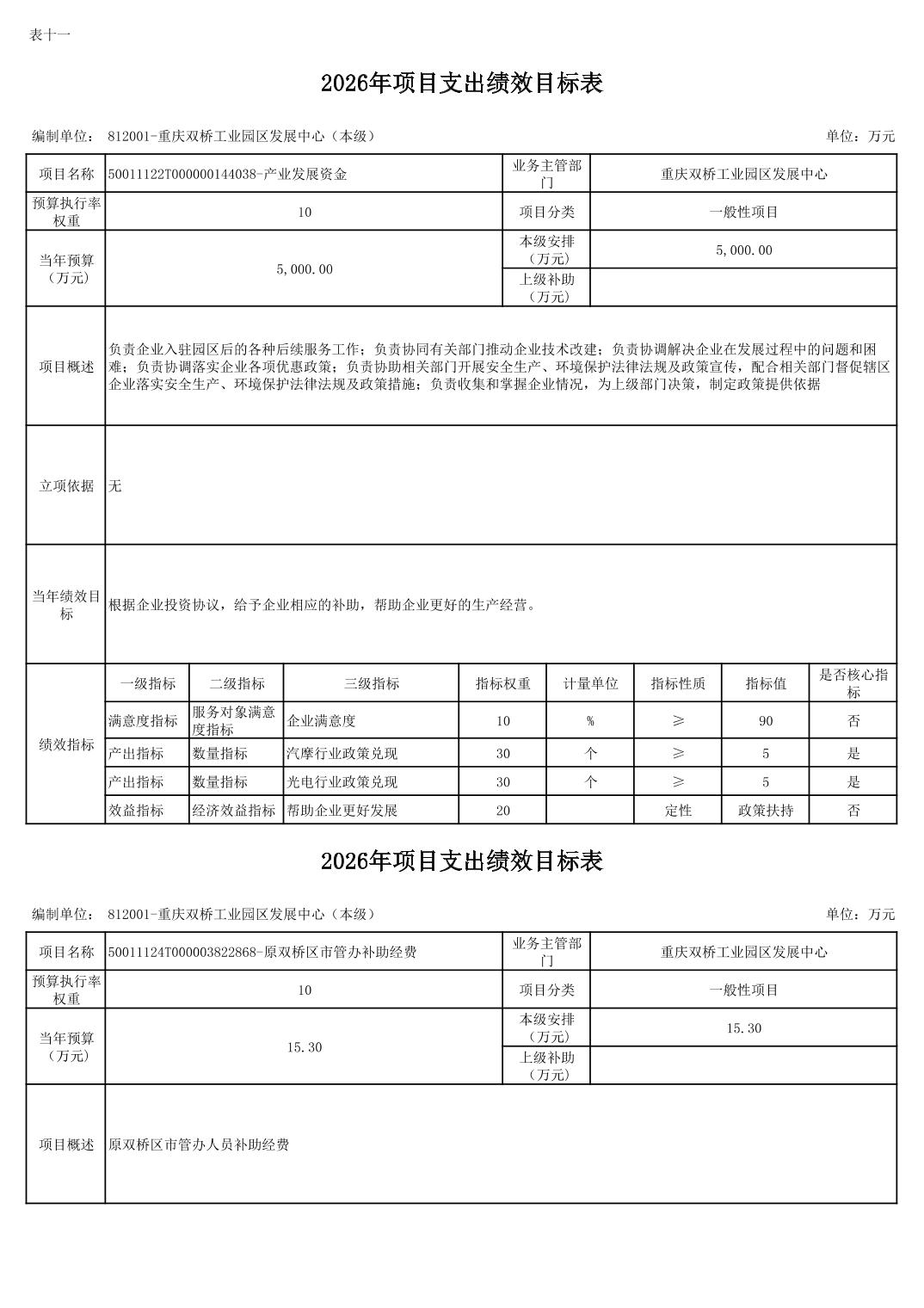 重庆双桥工业园区发展中心 2026 年部门预算情况说明