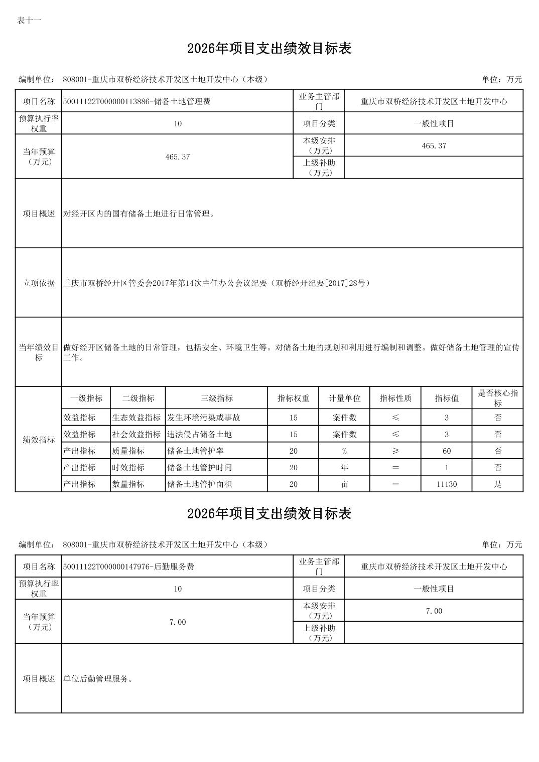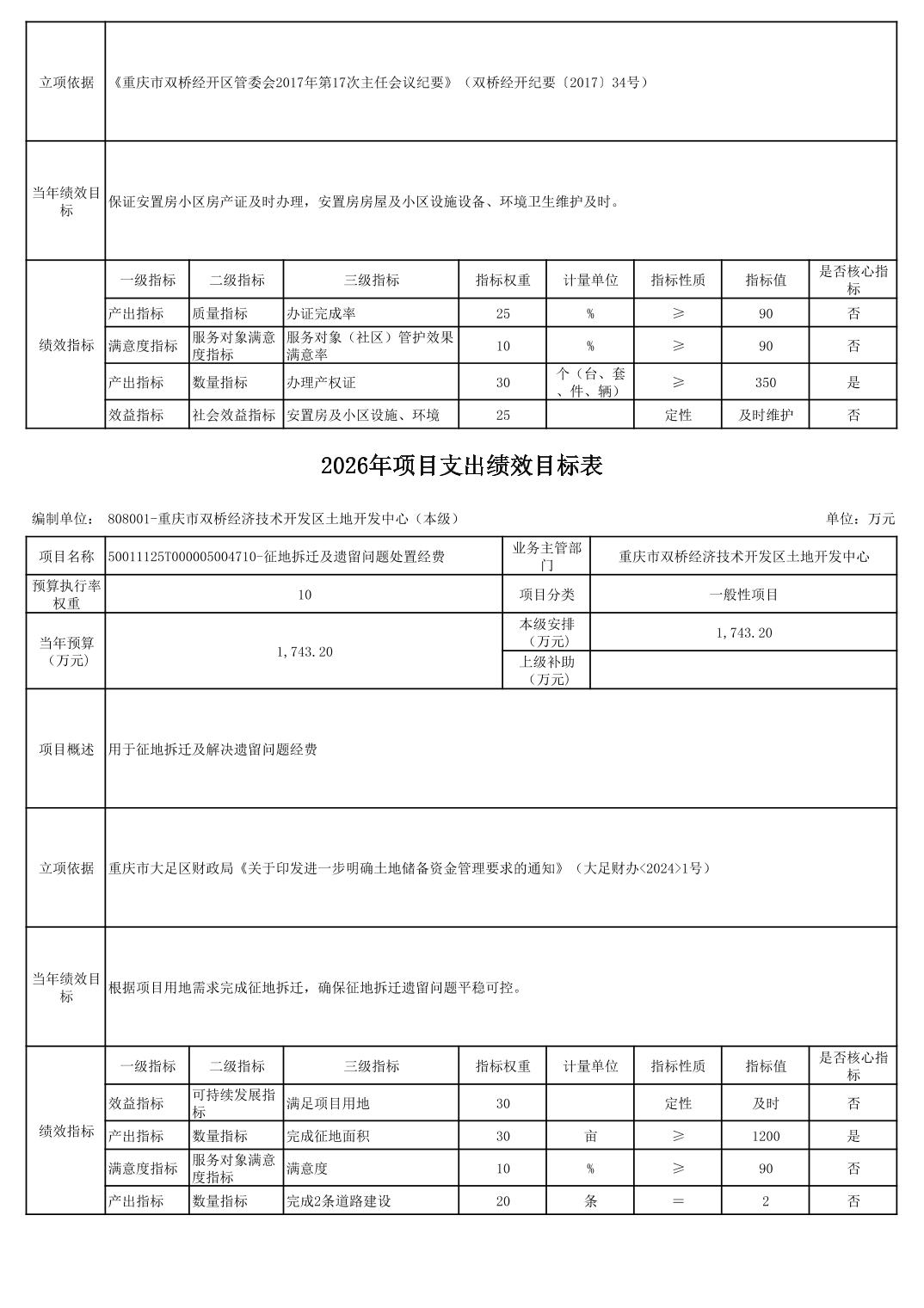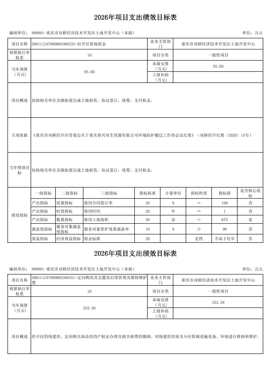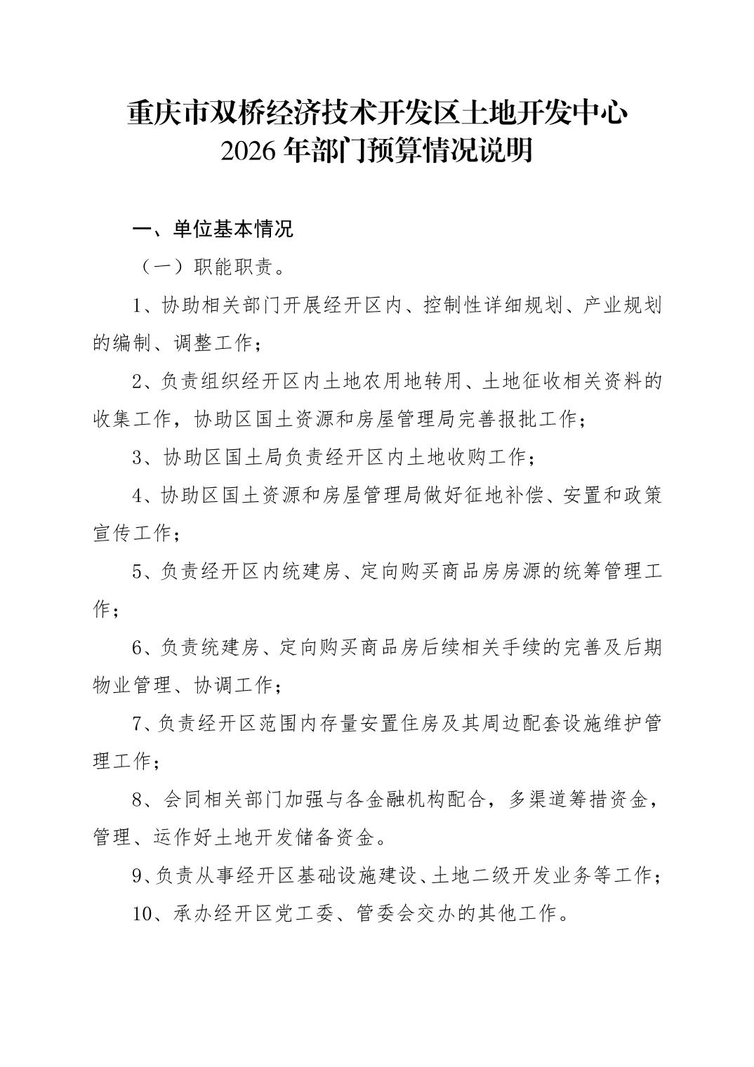 重庆市双桥经济技术开发区土地开发中心 2026 年部门预算情况说明