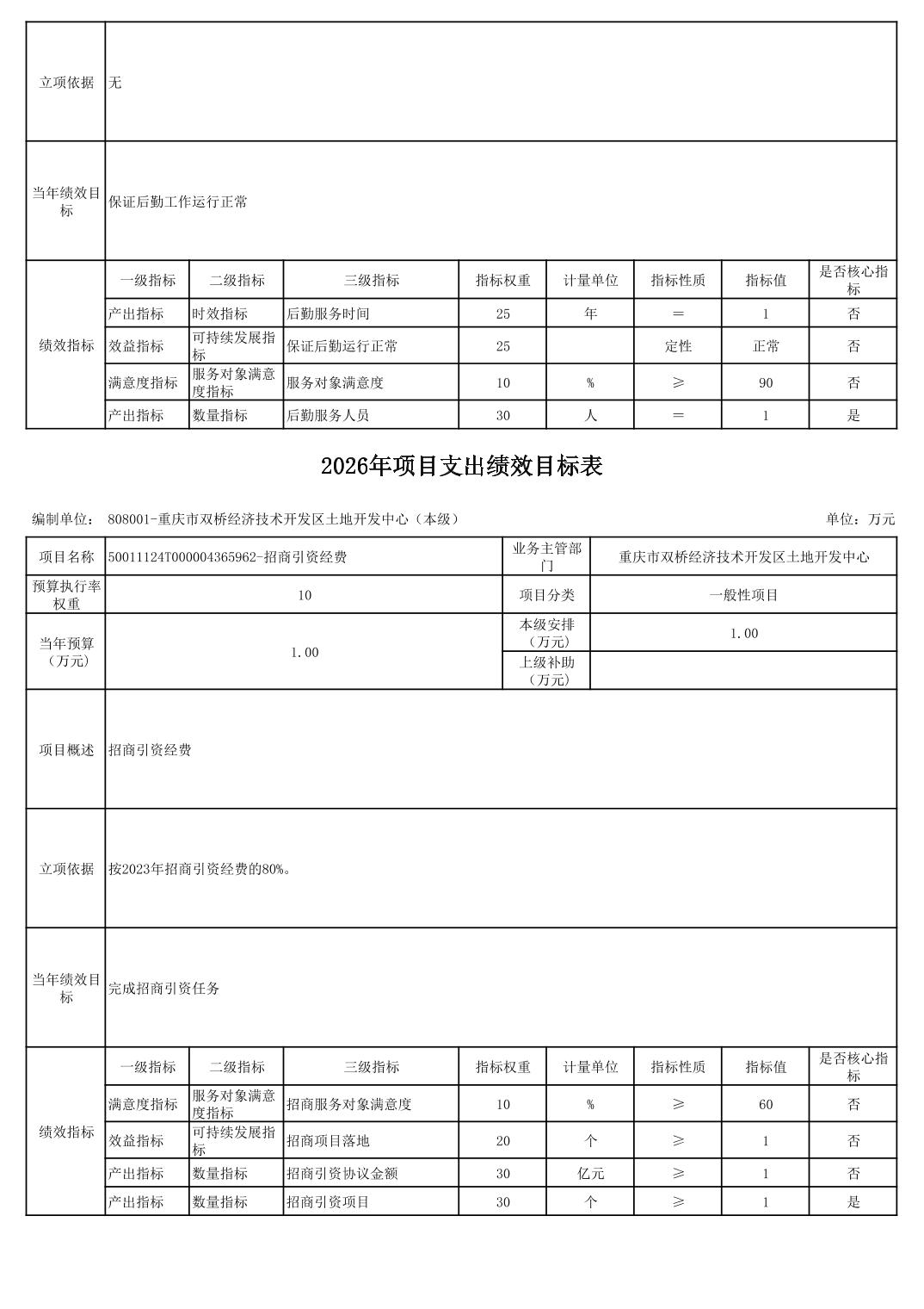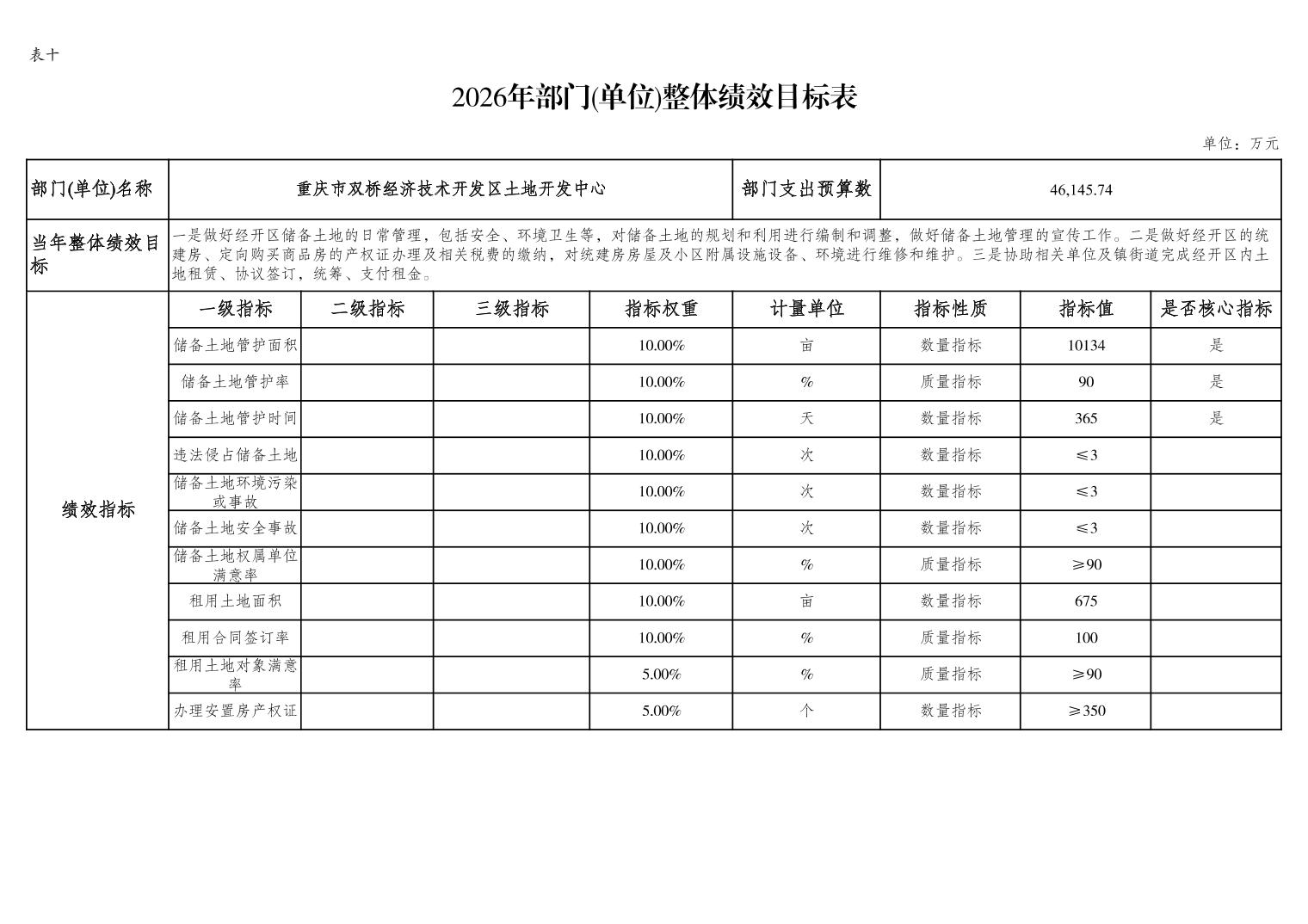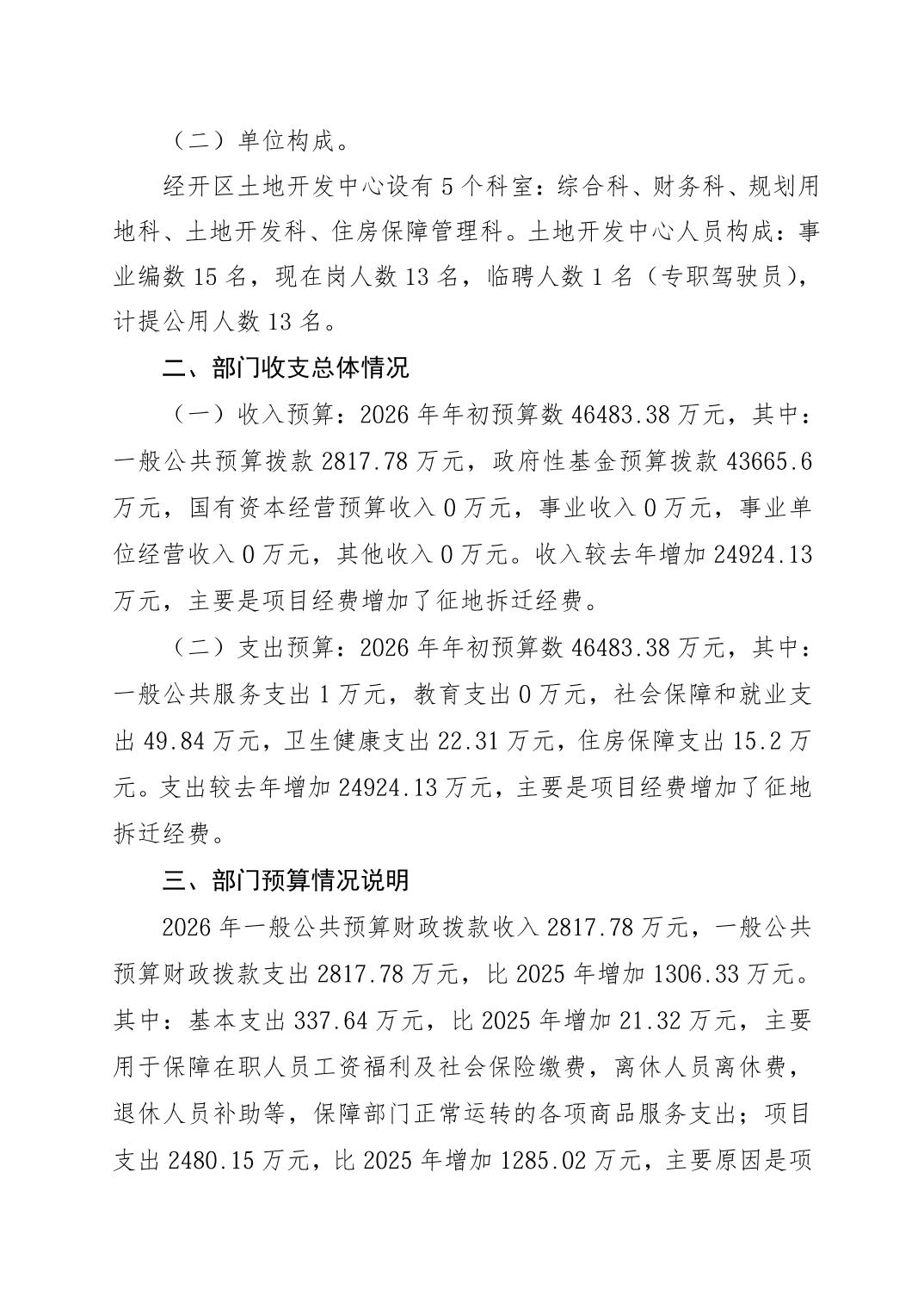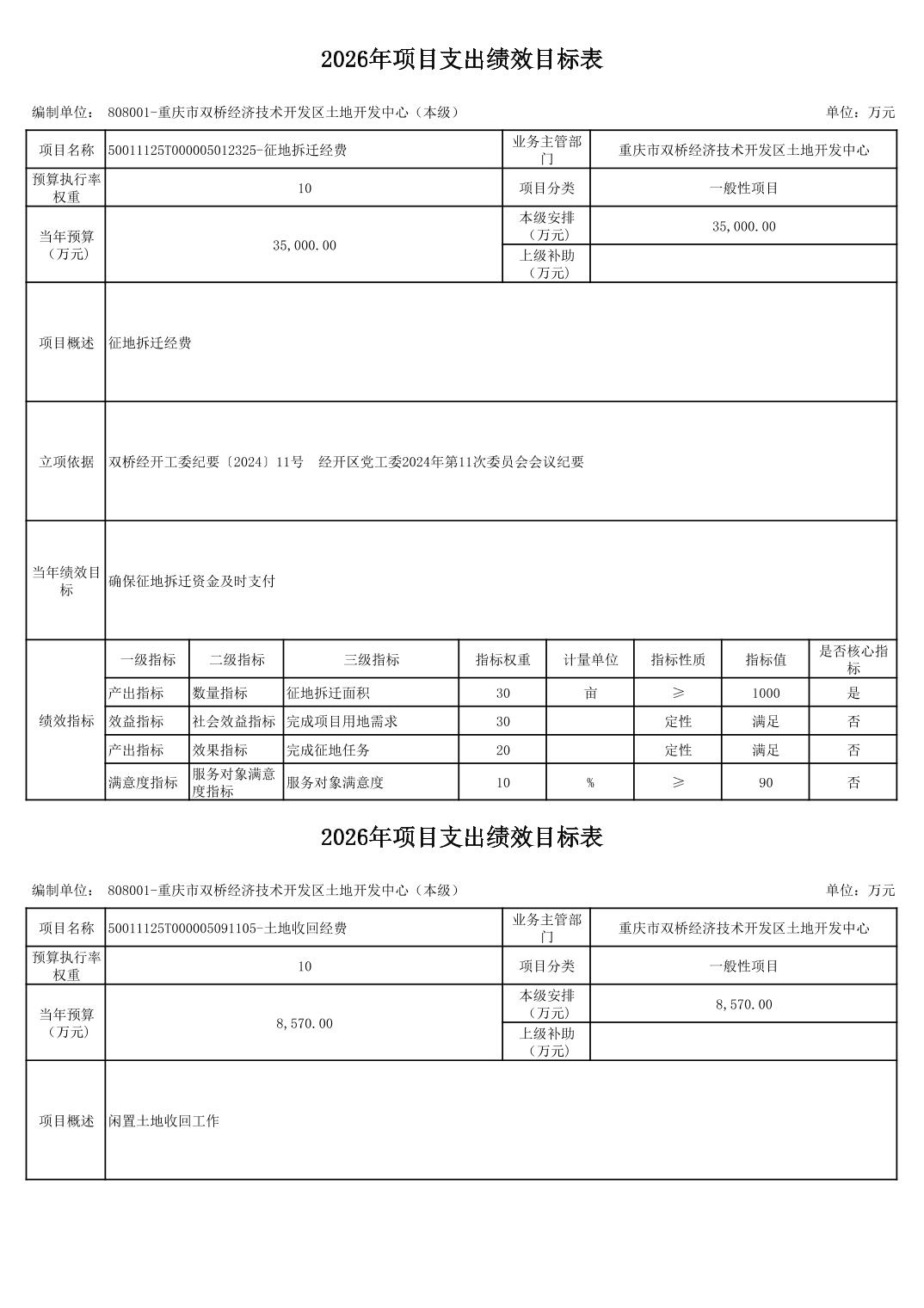 重庆市双桥经济技术开发区土地开发中心 2026 年部门预算情况说明
