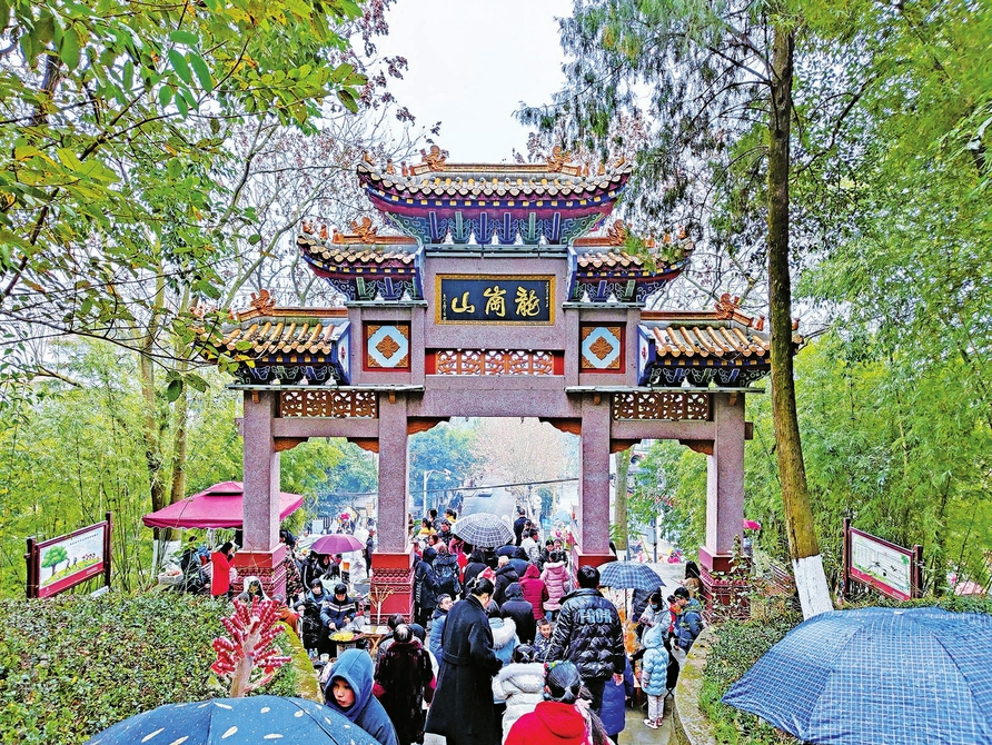 2月1日,来龙岗山游玩的市民络绎不绝。
