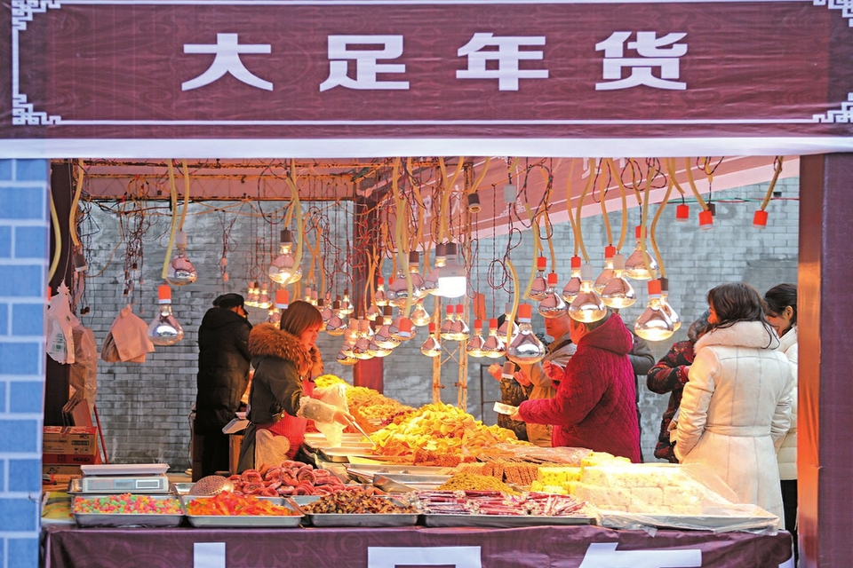 2月3日,昌州古城内商贩生意火爆,大足年货受欢迎。