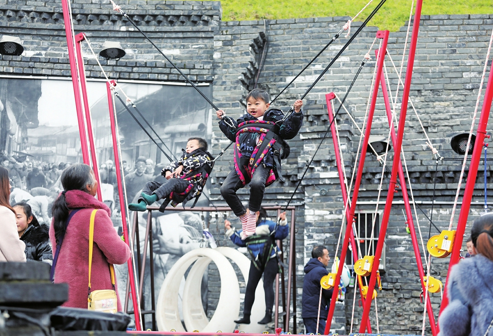 2月2日,孩子们在香国公园里玩耍。