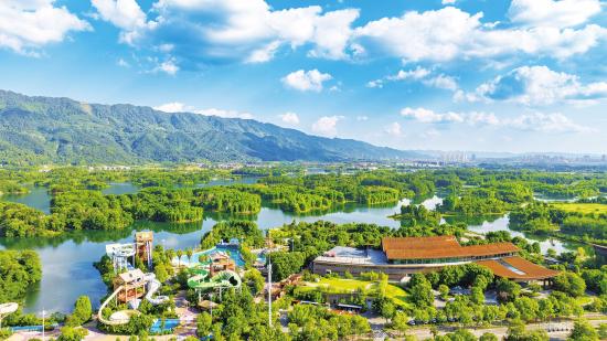 8月20日,龙水湖国际旅游度假区在蓝天、青山、绿水的掩映下,构成了一幅壮美的山水图。龙水湖国际旅游度假区背靠35平方公里的玉龙山国家森林公园,森林覆盖率达92%,拥有渝西地区第一个、重庆市第二个五星级温泉,依托6000亩龙水湖国家级水利风景区,打造成了集观光、体验、疗养为一体的综合型旅游度假区。
