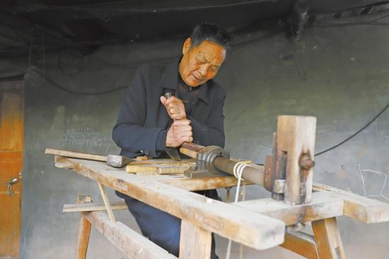 “现在眼睛不行了,没有以前快了!”为了给记者展示算珠打磨,杨永德再次坐上了那架由他几十年前自制的木质“机床”,随着双脚踩动踏板,固定在上方的木料迅速转动,在刻刀下逐渐成为一颗圆圆的珠子。