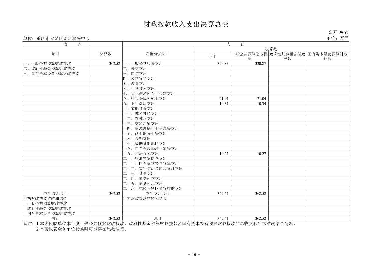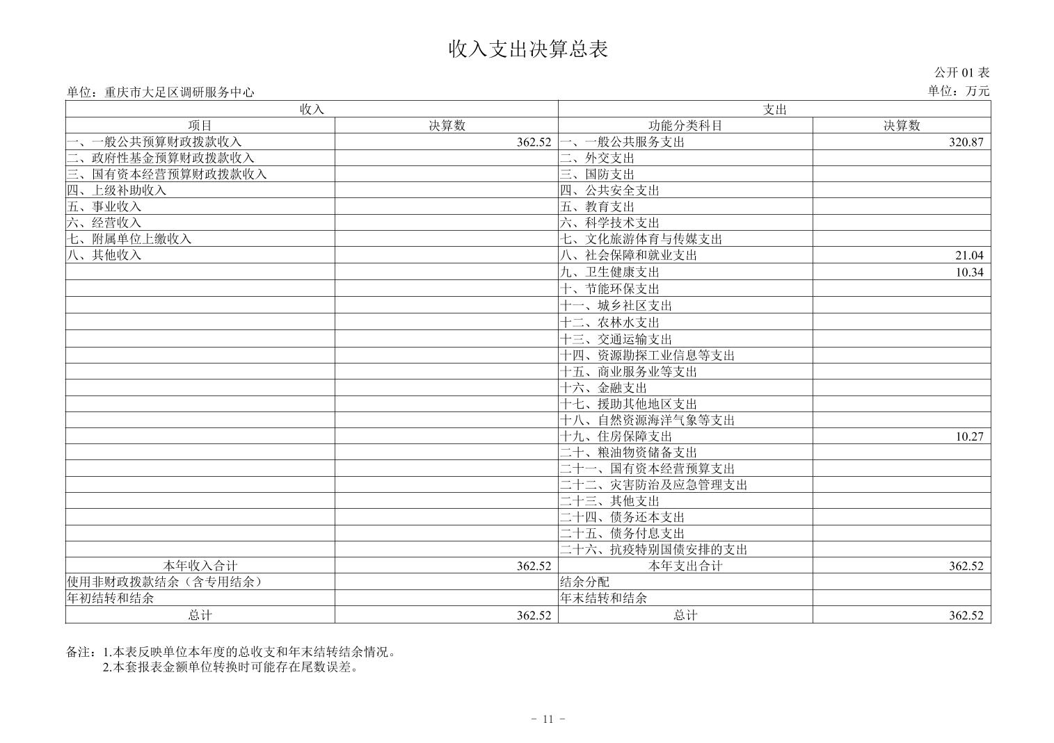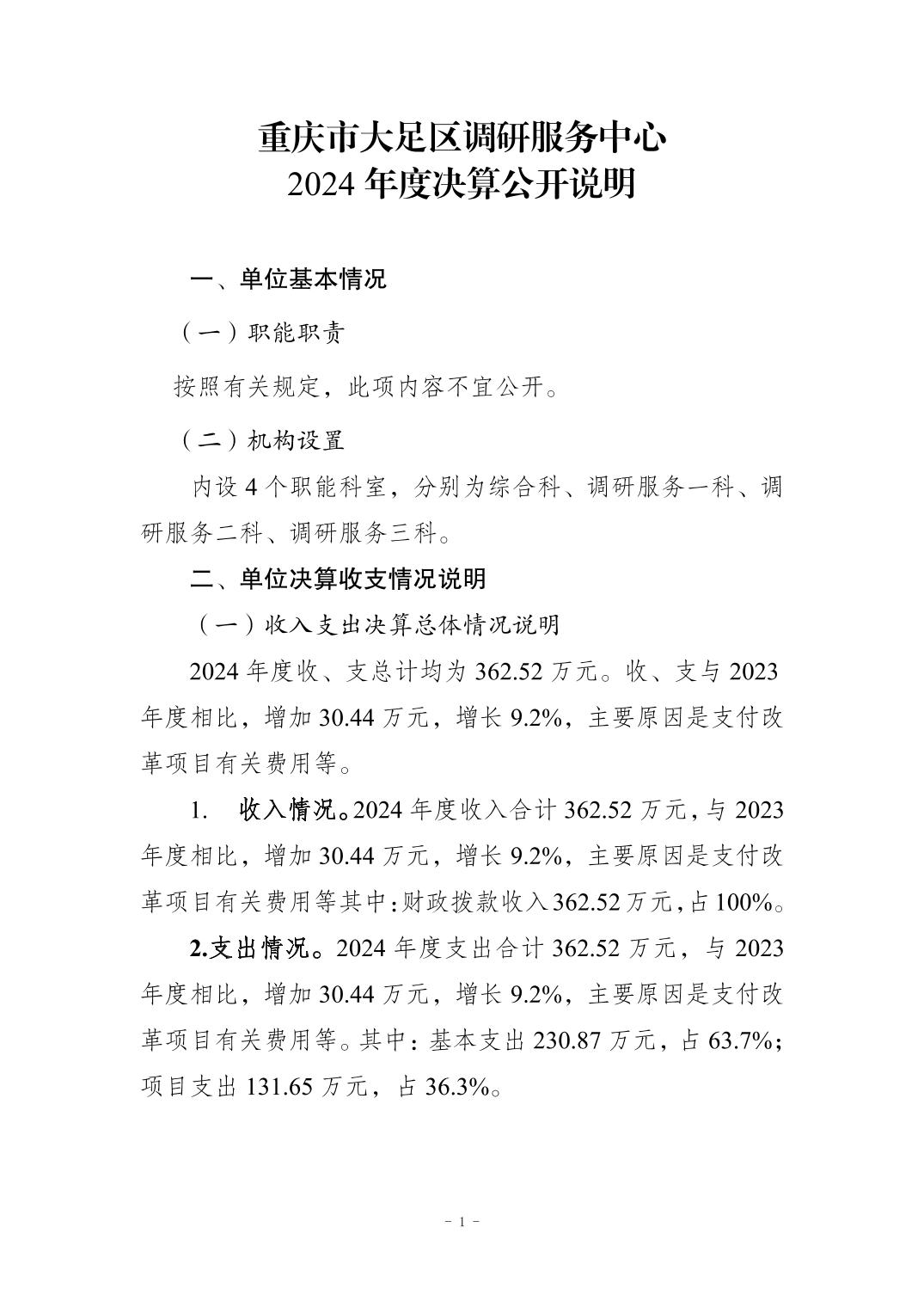 重庆市大足区调研服务中心2024年度决算公开说明及公开报表(单位)