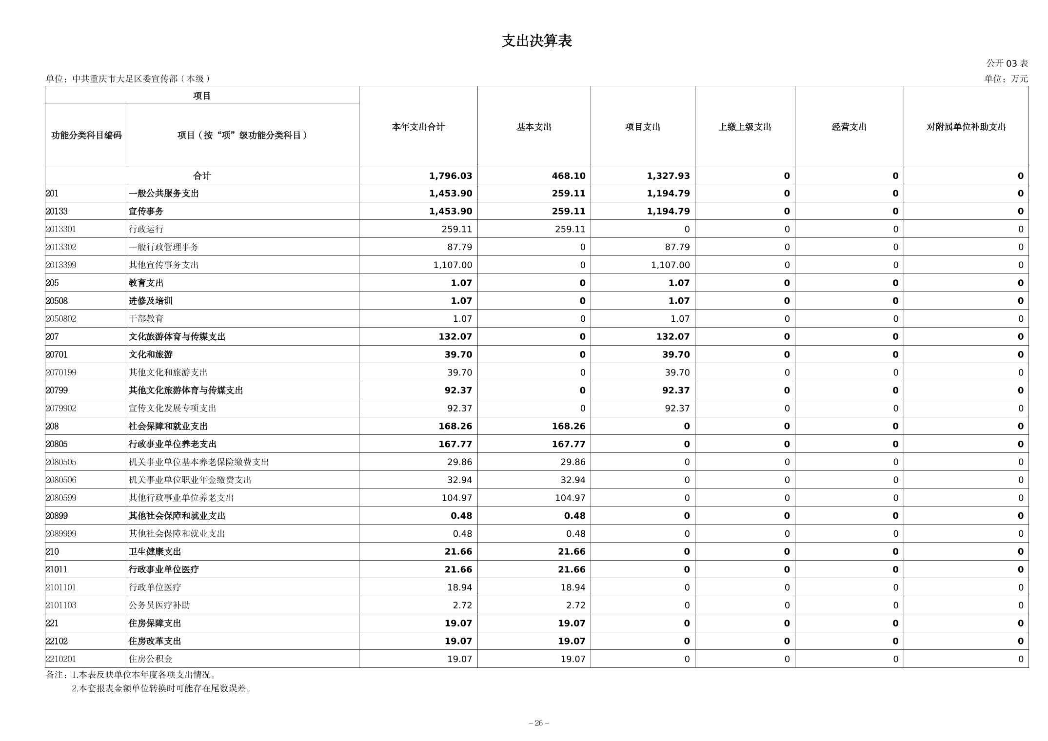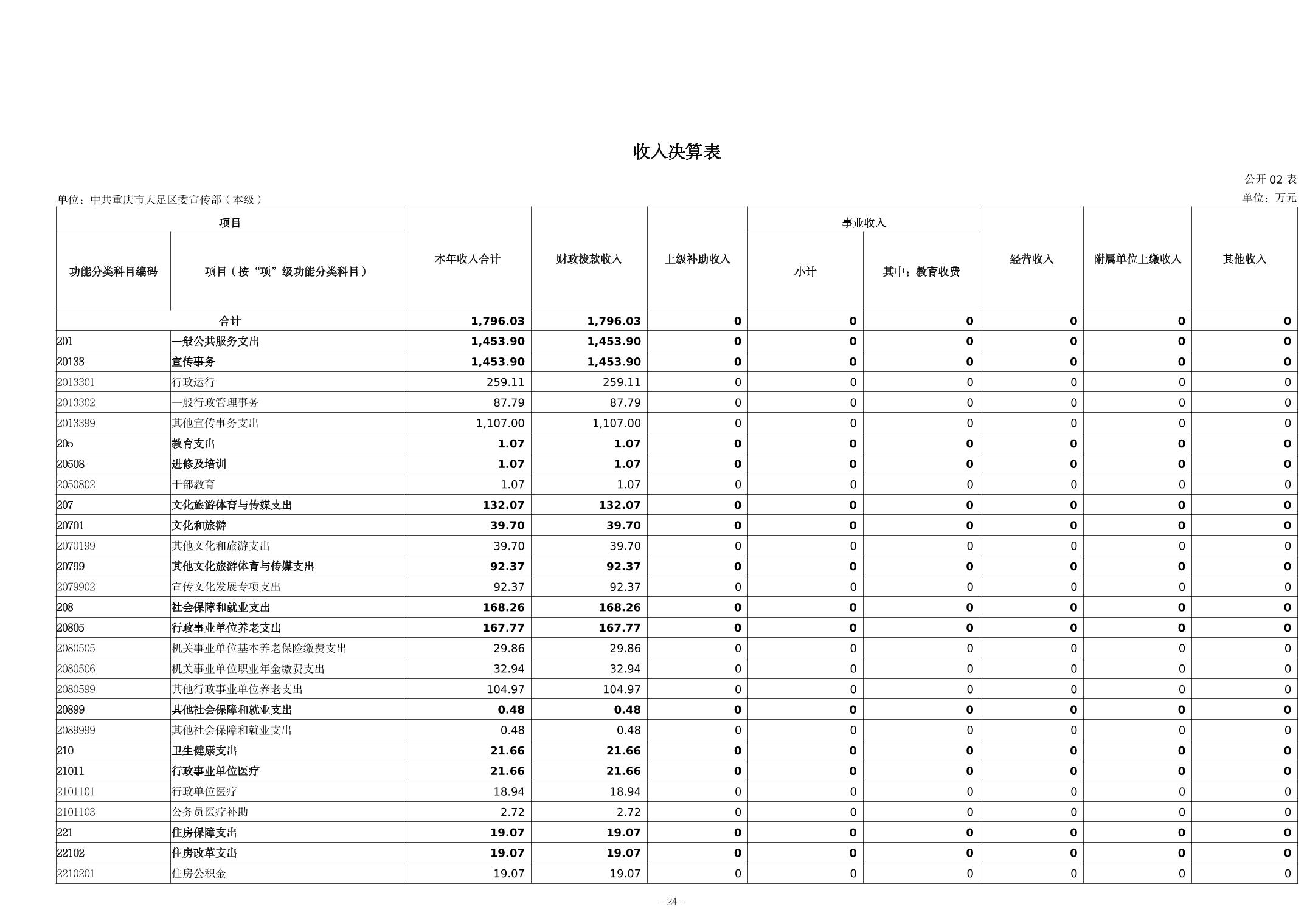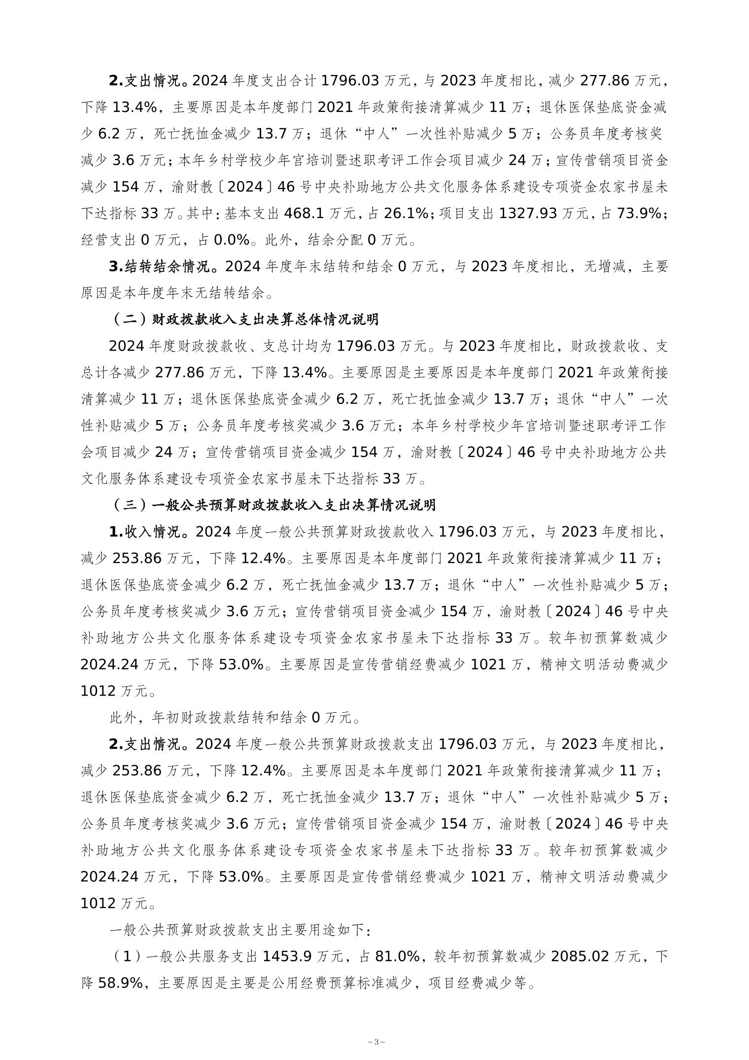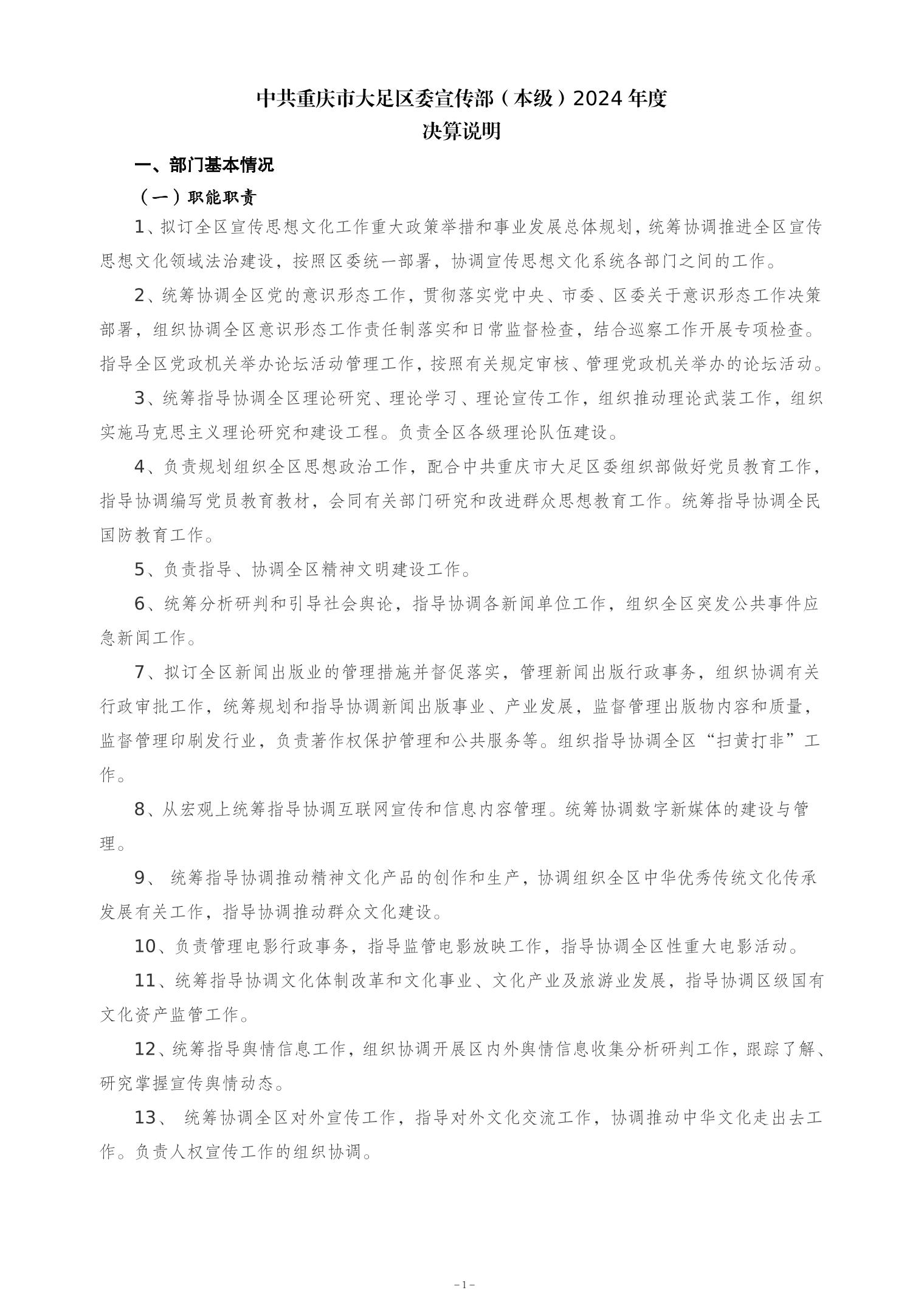 中共重庆市大足区委宣传部(本级)2024年度决算公开说明及公开报表(单位 )