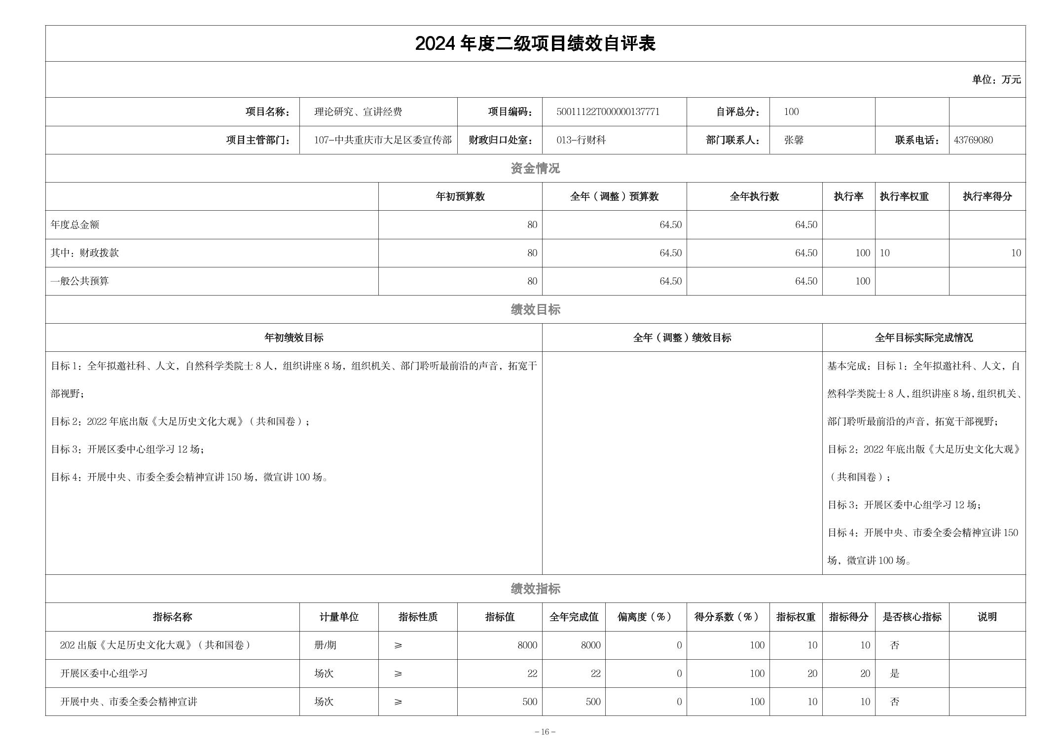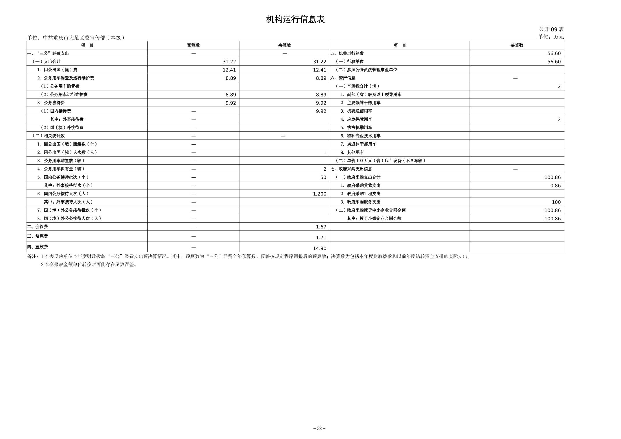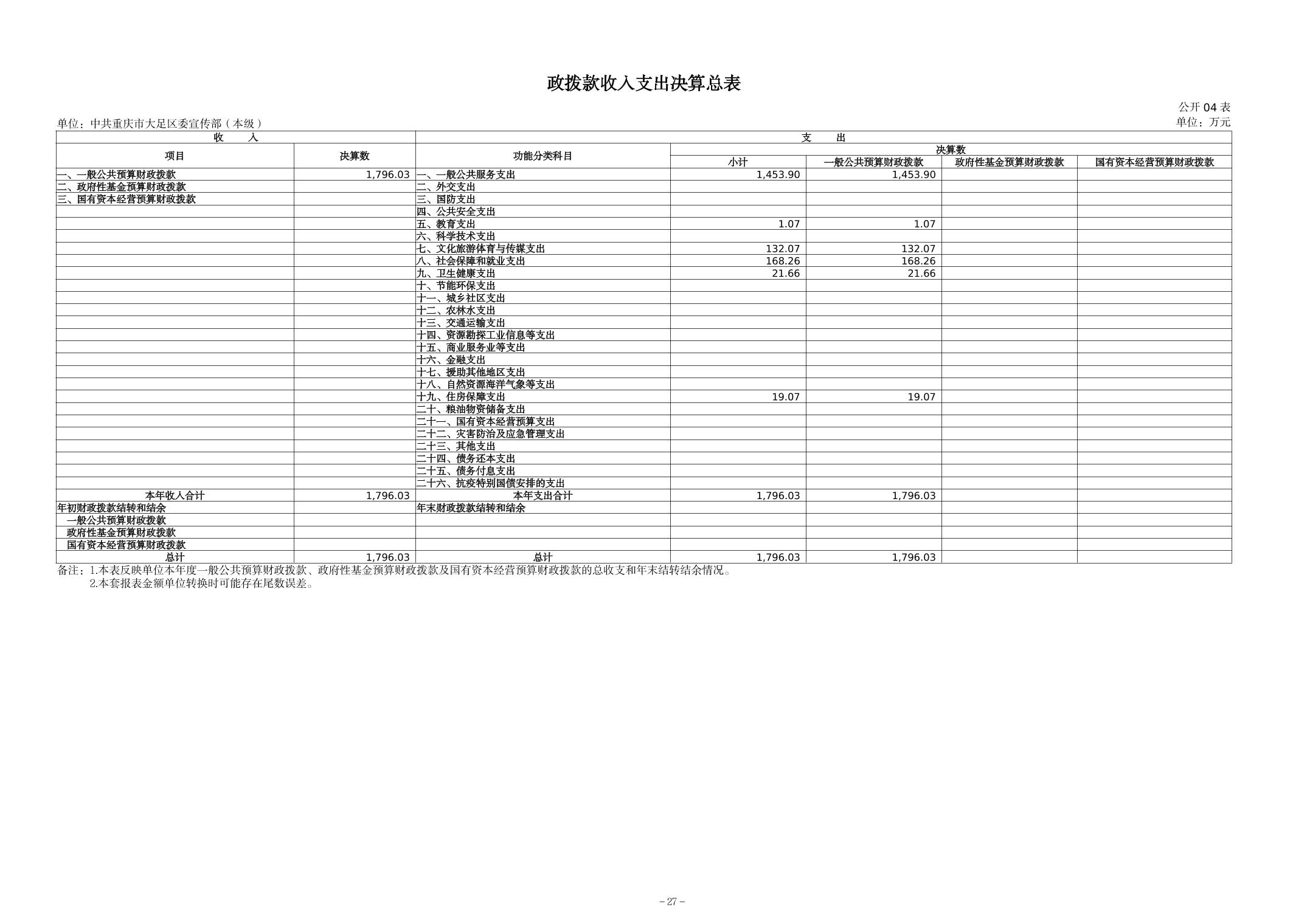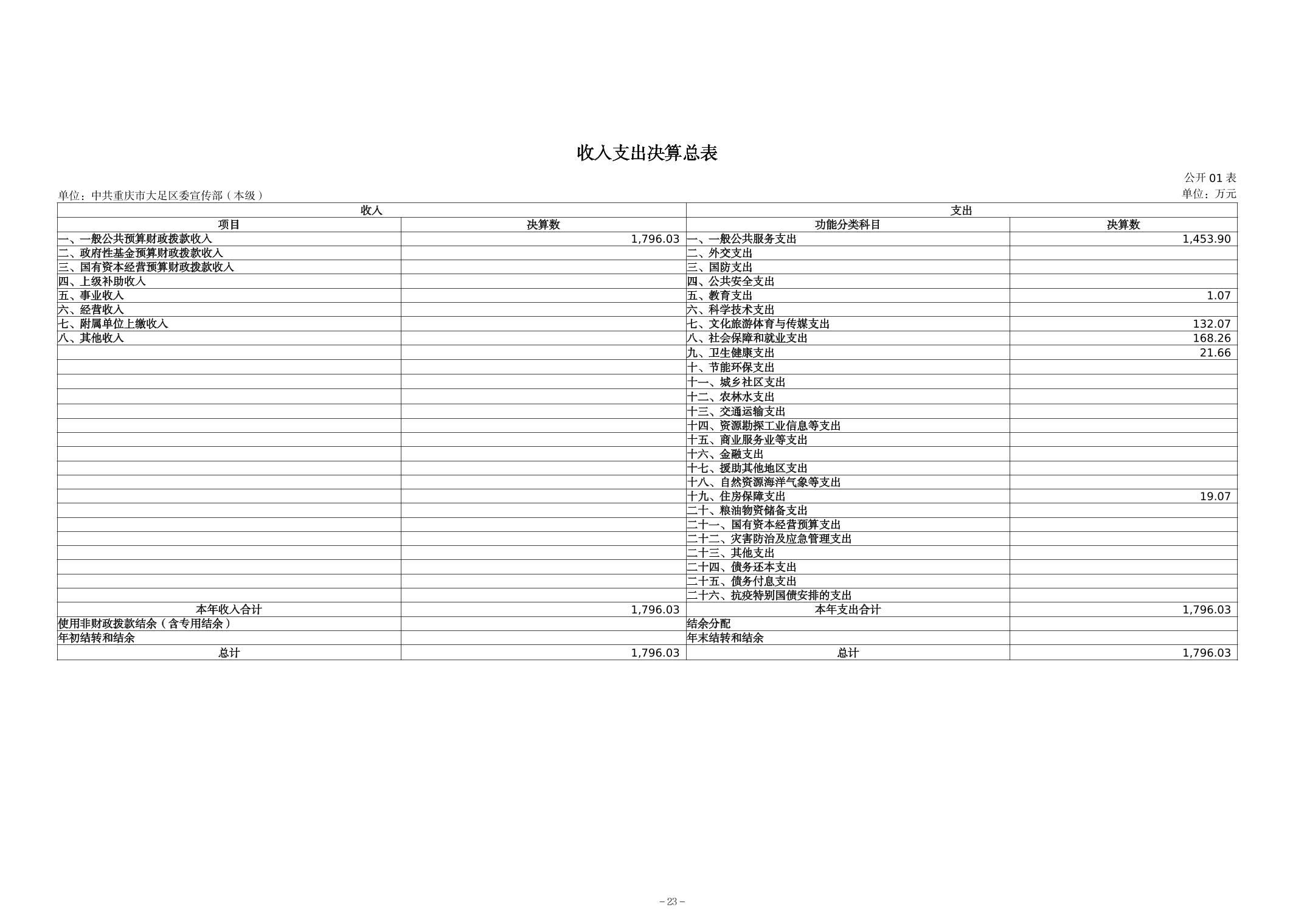 中共重庆市大足区委宣传部(本级)2024年度决算公开说明及公开报表(单位 )