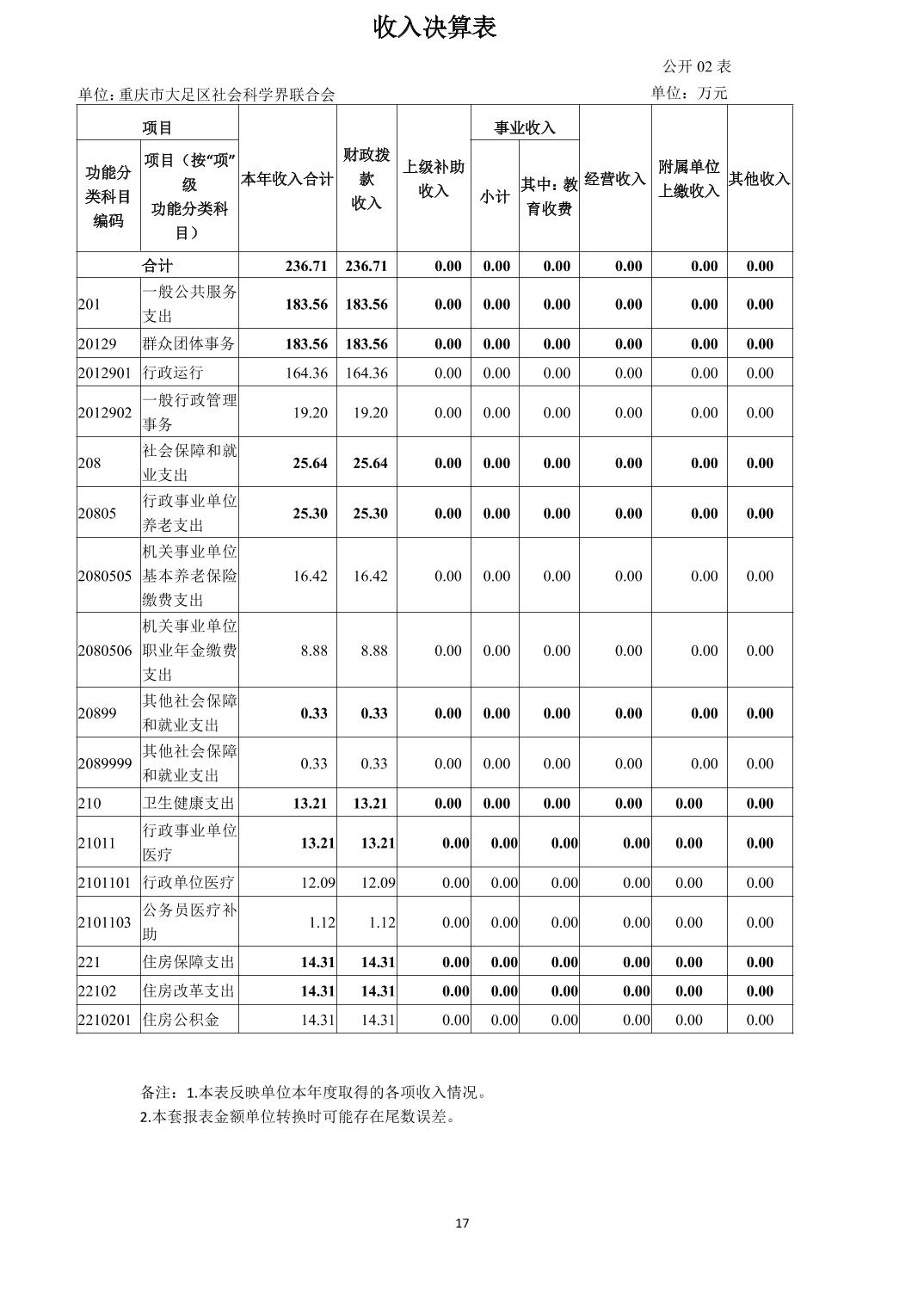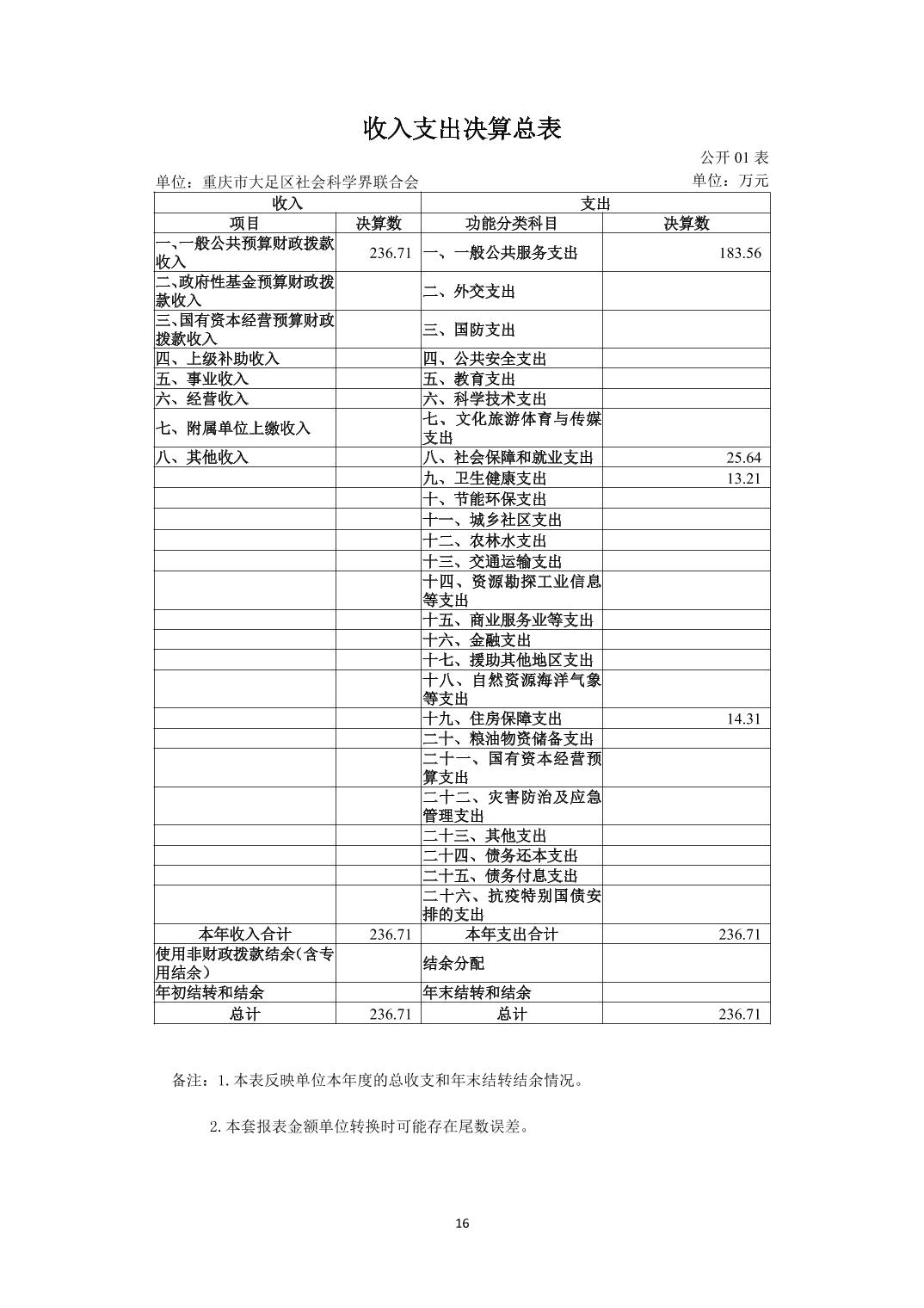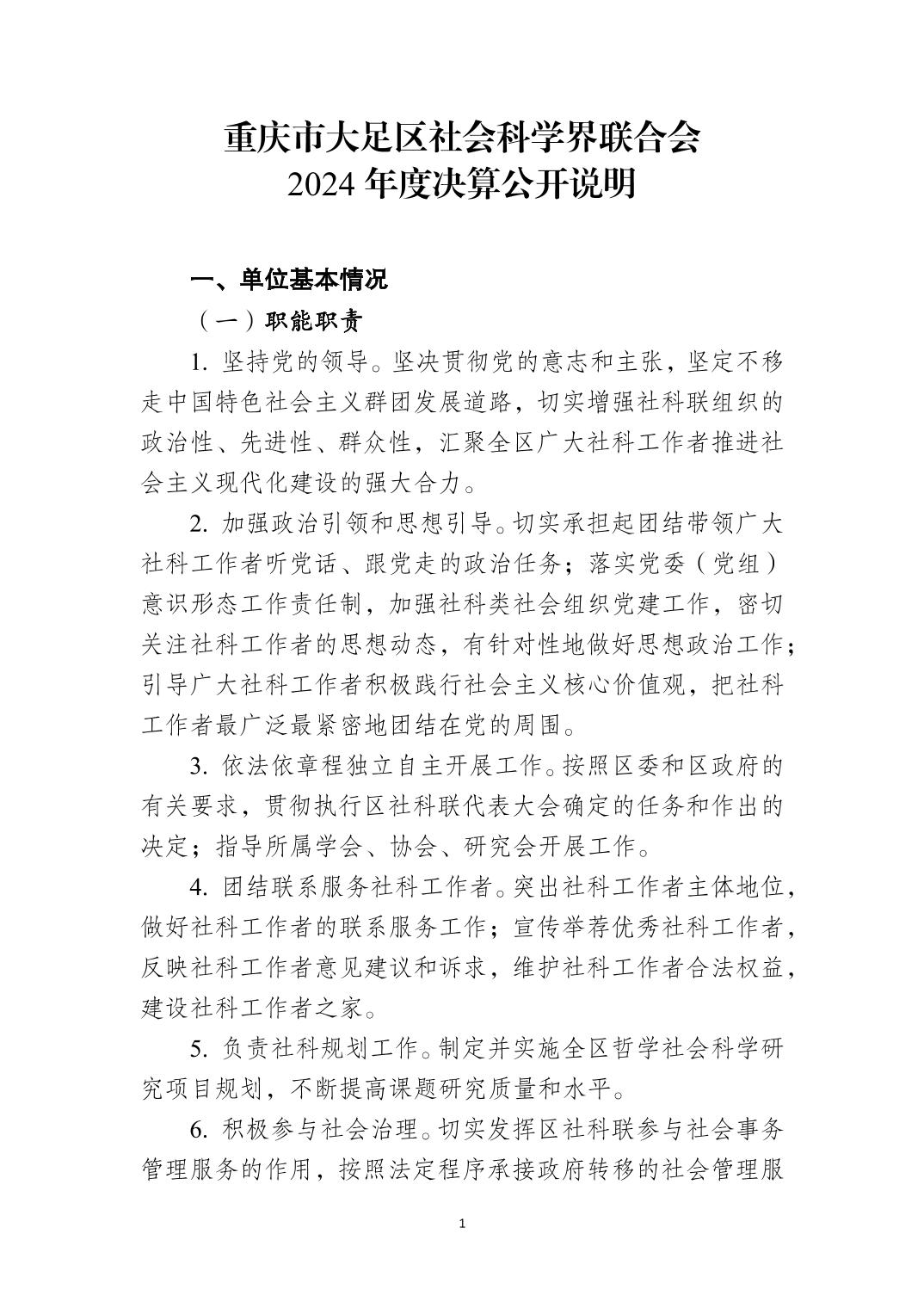 重庆市大足区社会科学界联合会2024年度决算公开说明及公开报表(单位)