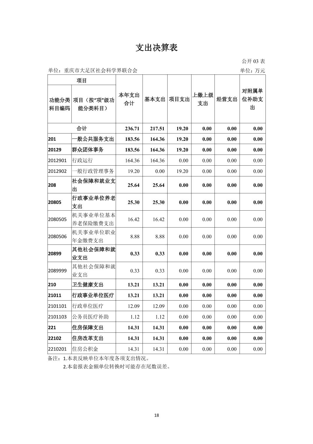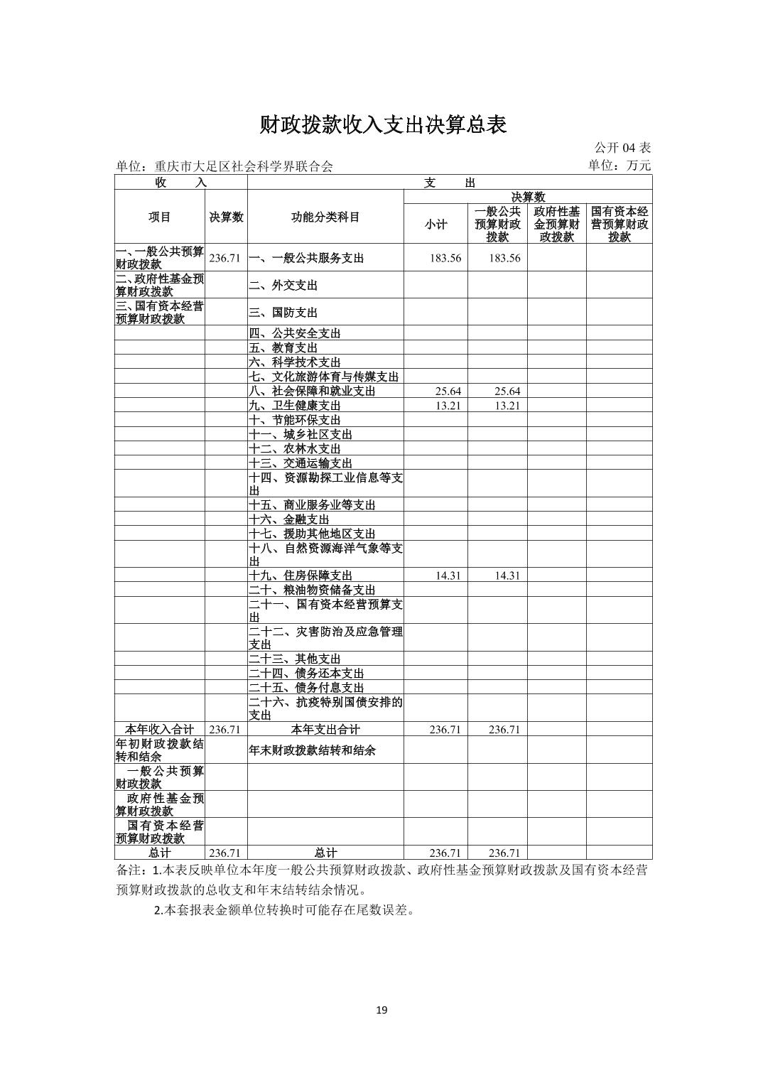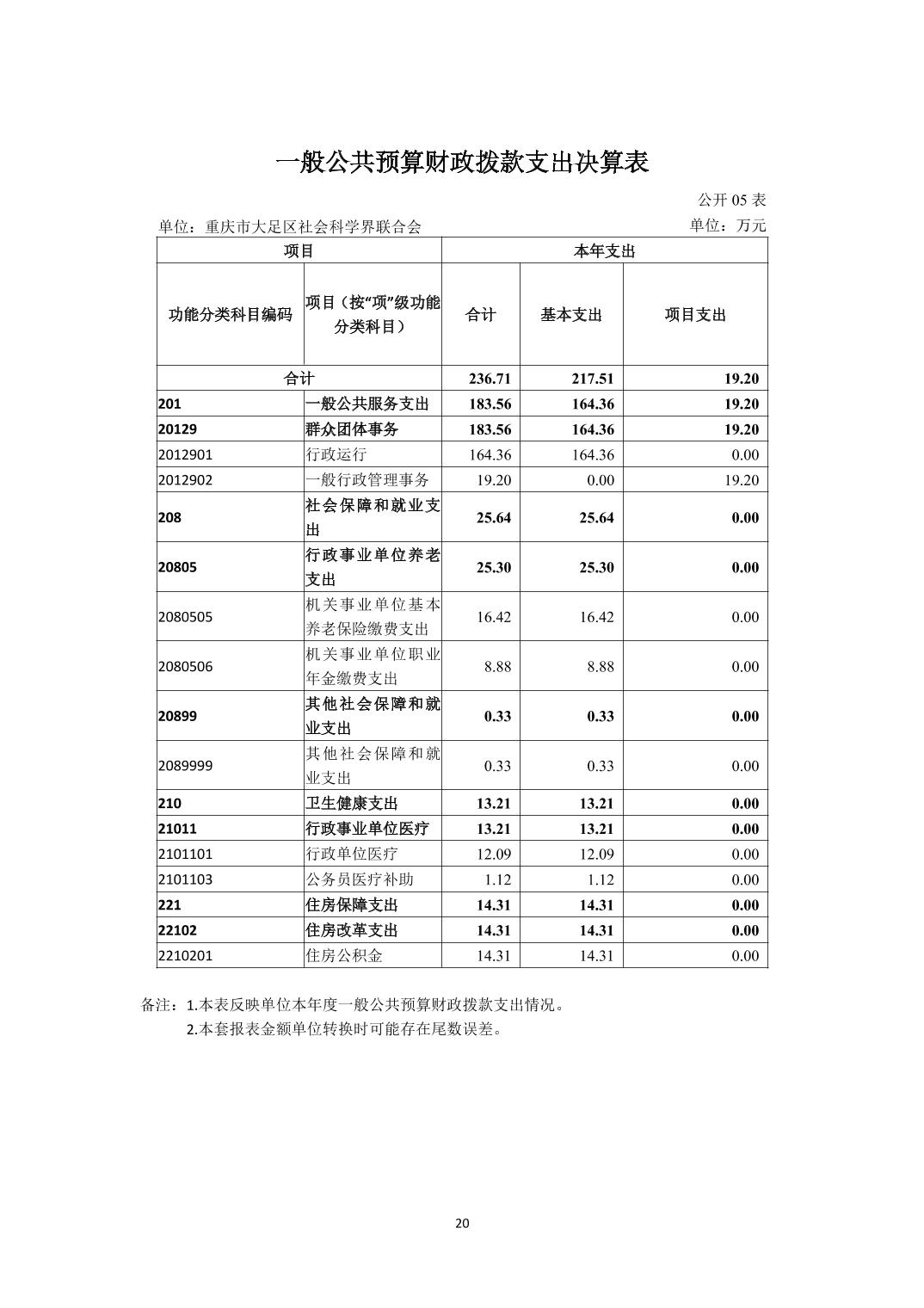 重庆市大足区社会科学界联合会2024年度决算公开说明及公开报表(单位)