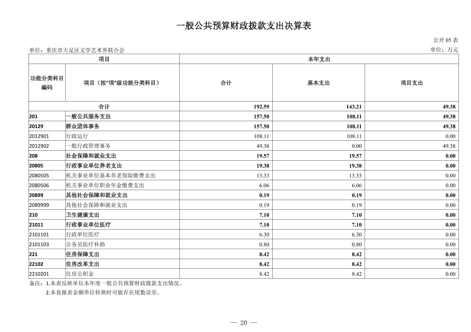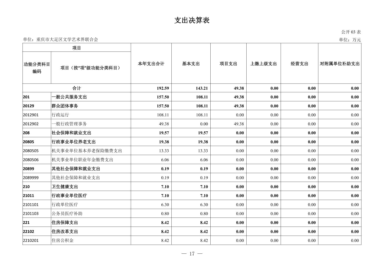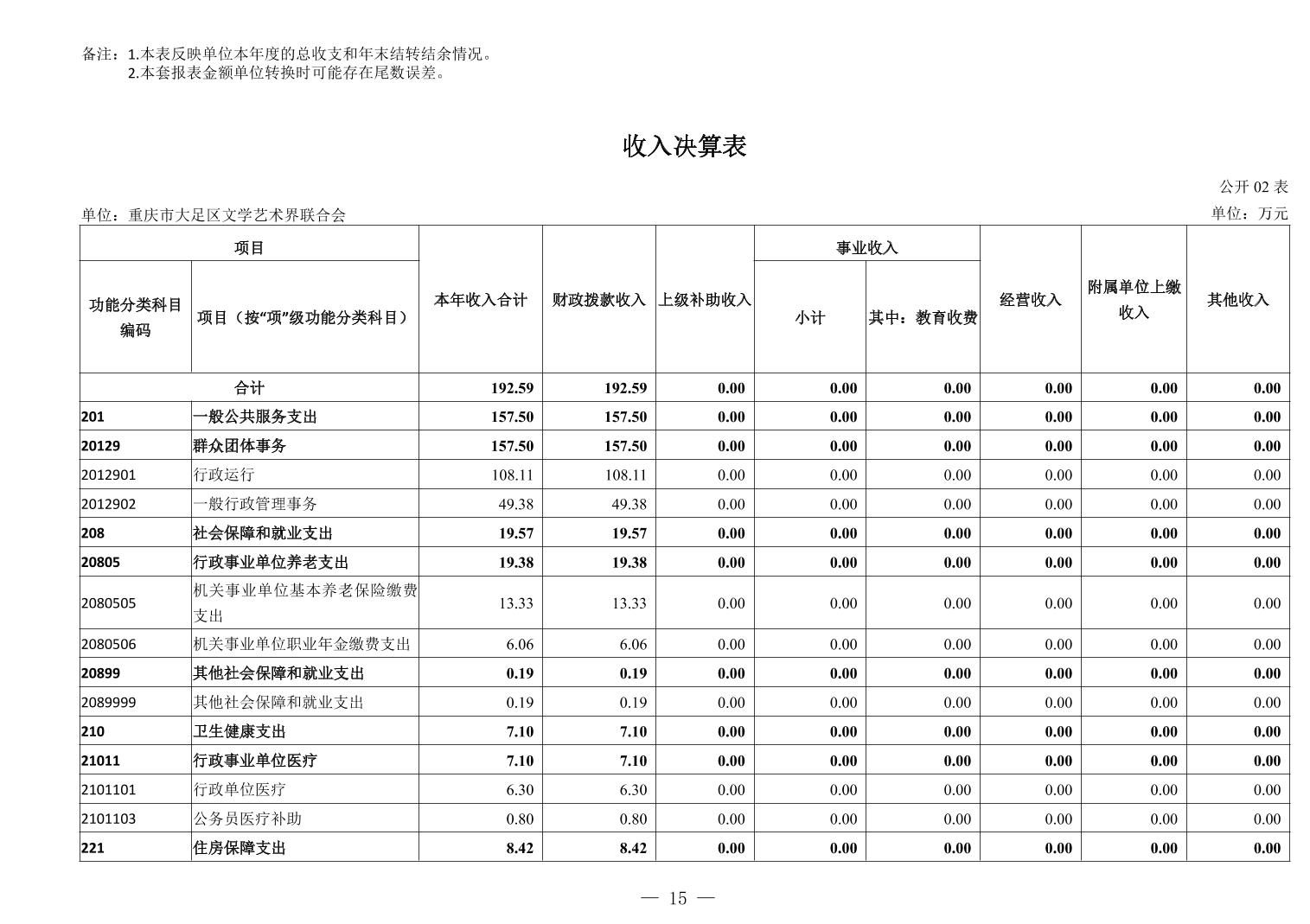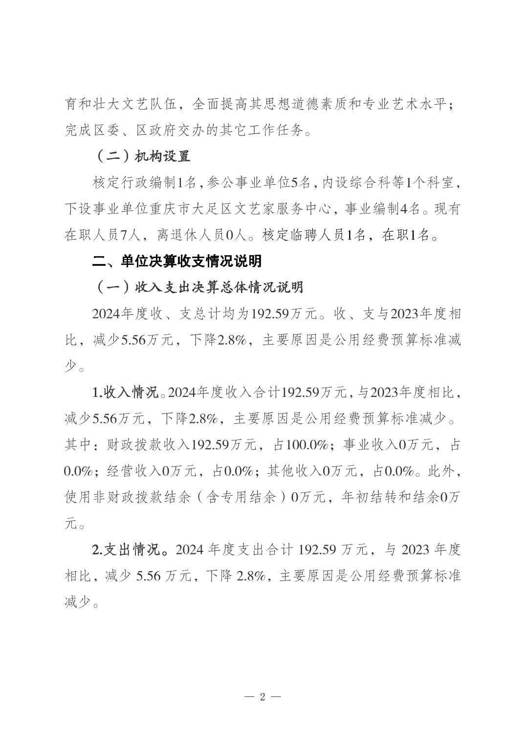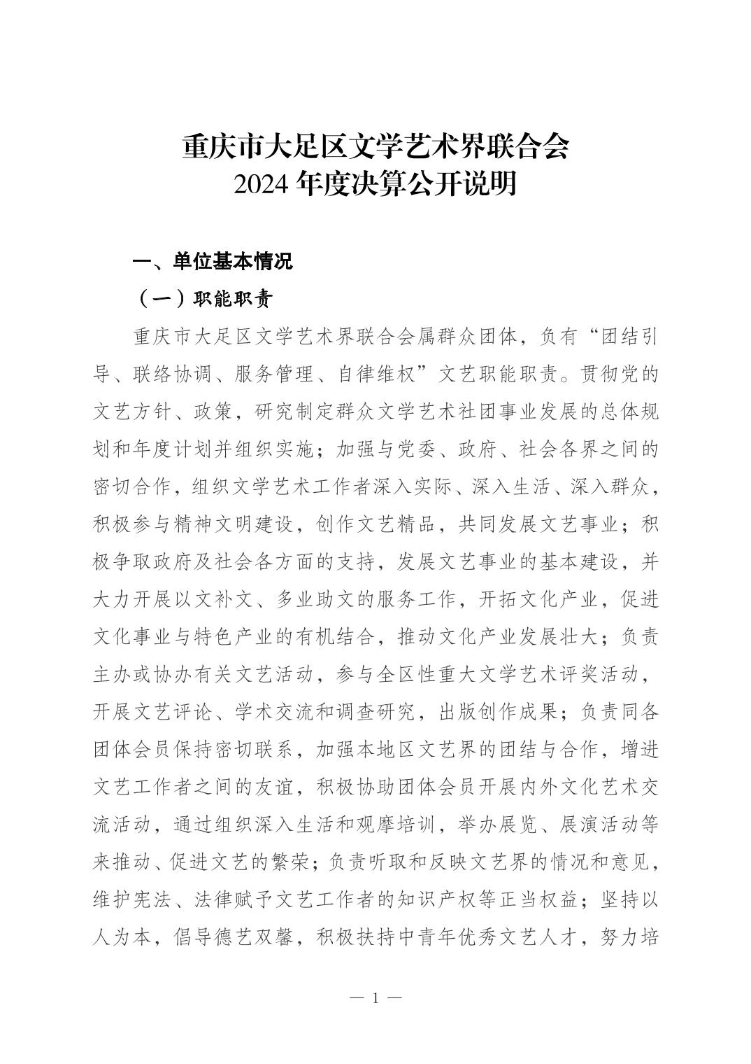 重庆市大足区文学艺术界联合会2024年度决算公开说明及公开报表(单位)