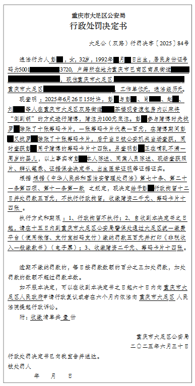 大足公(双路)行罚决字〔2025〕84号