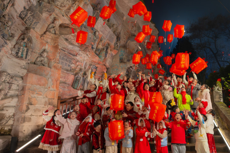 零点钟声祈福时,大足石刻上春晚!总台春晚,大足石刻与万古鲤鱼灯舞一起闪耀,让大足再次出圈,激起不少观众对大足和大足石刻的浓厚兴趣。春晚没看够?不用担心,马上还有一部文化出圈大戏将与观众见面。