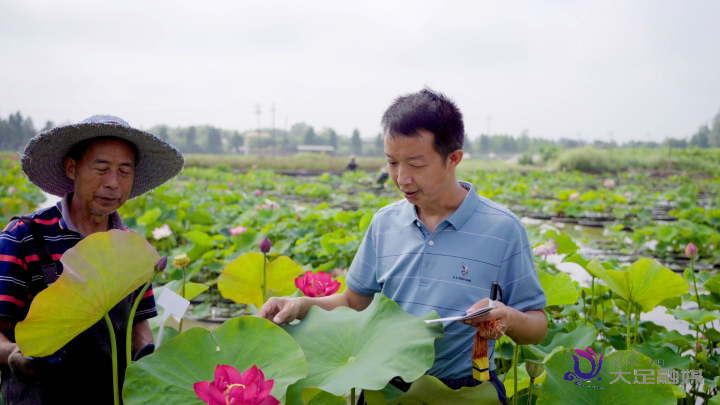 大足区雅美佳荷花育种基地负责人陶麟说:“培育新的荷花品种是一个复杂且漫长的过程。简单说来,主要就是进行杂交。我手上拿着的就是这个新品种的母本和父本。我们希望新品种有母本太空飞天的美丽花型,也兼具父本太空红旗高饱和度的颜色。”