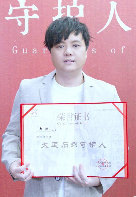 接过大足石刻守护人荣誉证书,郑源深感荣幸和使命光荣。他表示,大足是一座历史底蕴深厚的城市,世界文化遗产大足石刻尤其值得被更多人了解与珍视。现场,他诚挚邀请广大歌迷来到大足,切身感受这里浓郁的历史文化氛围。郑源还表示,自己非常愿意成为大足的文化传播者,希望用歌声守护中华文脉、传递家国情怀,与众人一起,为大足石刻的保护、传承与推广贡献一份力量。