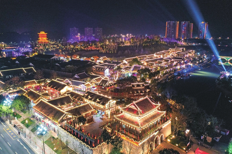 2月3日,昌州古城璀璨的夜景灯饰。