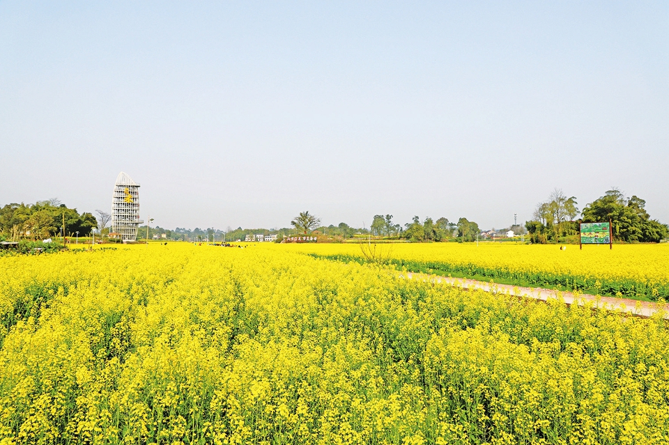 隆平五彩田园里金黄的油菜花。记者谭显全摄