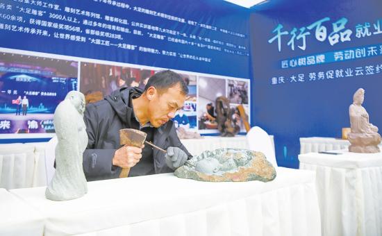 “大足雕客”劳务品牌除了延续传统的石雕、石刻工艺,还引入了玉雕、木雕、泥塑等新的作品材料和技术,让从业者有更多的就业机会和就业岗位,也让这块金字招牌有了更大的就业和发展空间。
