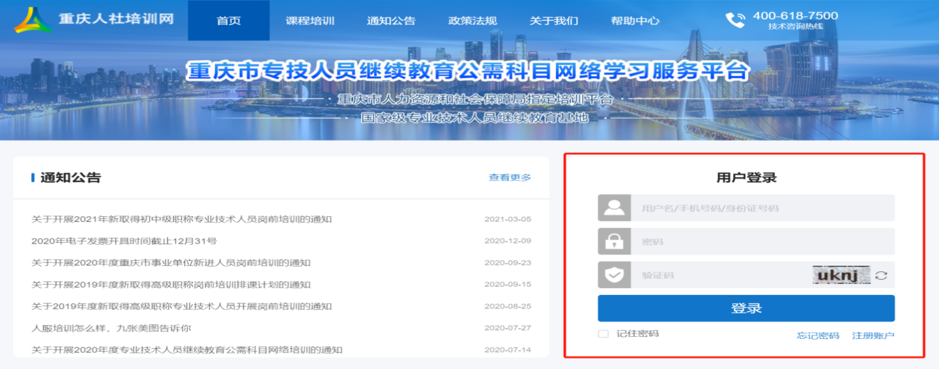三)进入登录页面,进行注册、登录及修改密码操作。(如已在重庆人社培训网学习平台注册账号的学员,则使用原账号密码登录)。