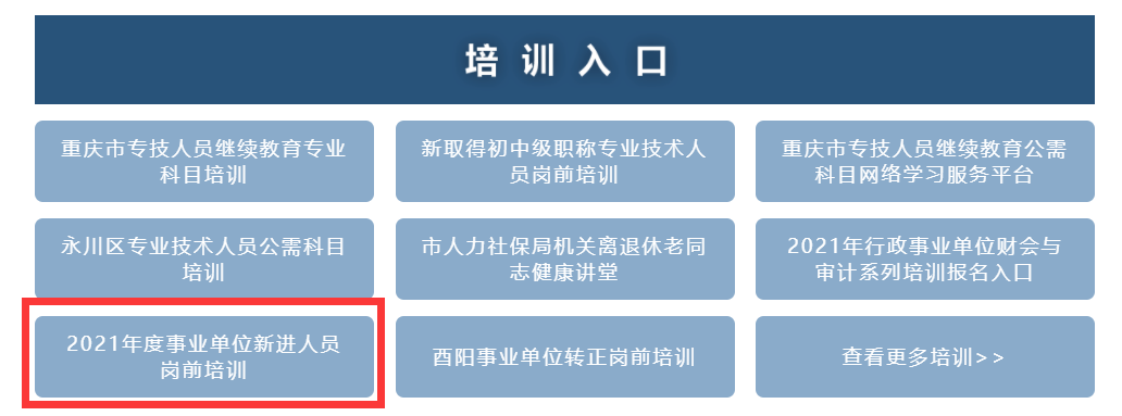 (二)在主页面培训入口处,点击“2021年度事业单位新进人员岗前培训”入口,进入登录页面。