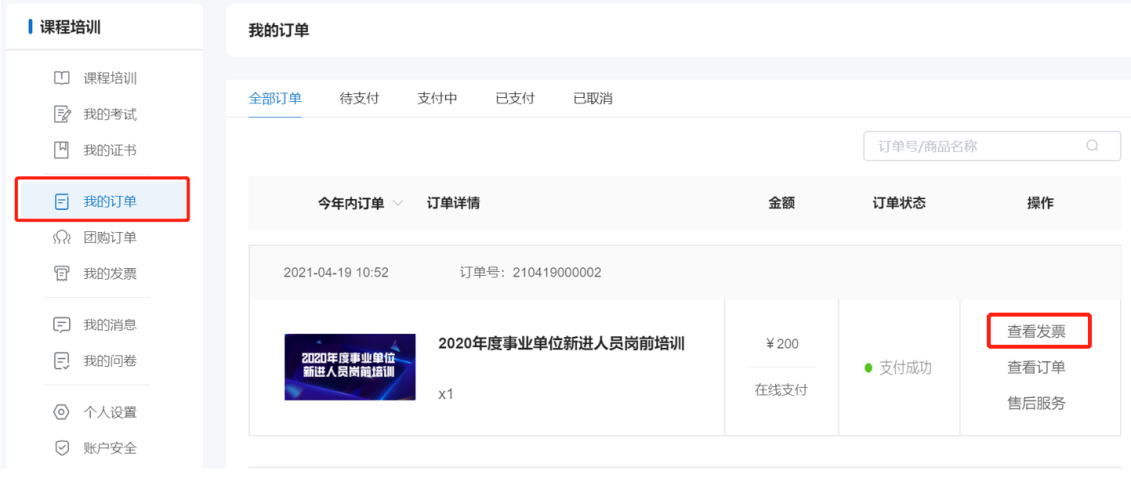 (一)缴费成功后,在“我的订单/团购订单”或“我的发票”中均可通过“查看发票”预览、打印或下载电子发票。若提交订单时选择的“以后申请”,可以点击“查看发票”选择“申请开票”进行补开发票(不能跨年补开发票)。