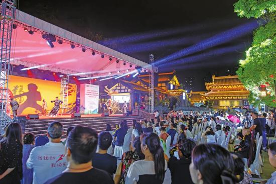 近年来,大足区联动商文旅体等业态,进一步激活夜间消费,提质夜间消费内容,打造丰富多元的夜生活。随着消费业态的不断升级,在大足,以餐饮、购物为主的夜市,不断向融合文化、旅游、娱乐等多种业态的夜间文旅消费集聚区转变,吸引着越来越多“松弛”的大足市民。图为5月30日,大足区荷塘夜市,市民正在观看夜间文艺演出。