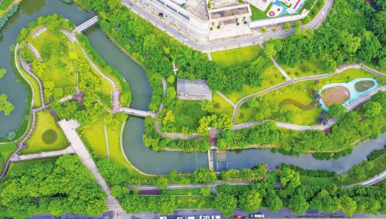 8月3日,航拍下的永定河湿地公园郁郁葱葱,河道内利用水上浮床种植的鸢尾、睡莲等多种水生植物也盛开了娇艳的花朵。近年来,大足区以“生态优先、绿色发展”为导向,持续推进公园建设与全域绿化,构建“城在绿中、人在景中”的生态格局。