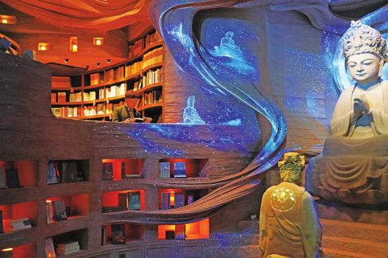 大足石刻游客中心南书局以石窟石刻为主题,打造出一个充满文化气息的沉浸式空间。
