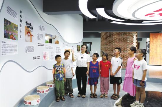 回龙镇机关干部在﹃渝好空间﹄为孩子们介绍回龙红高粱。
