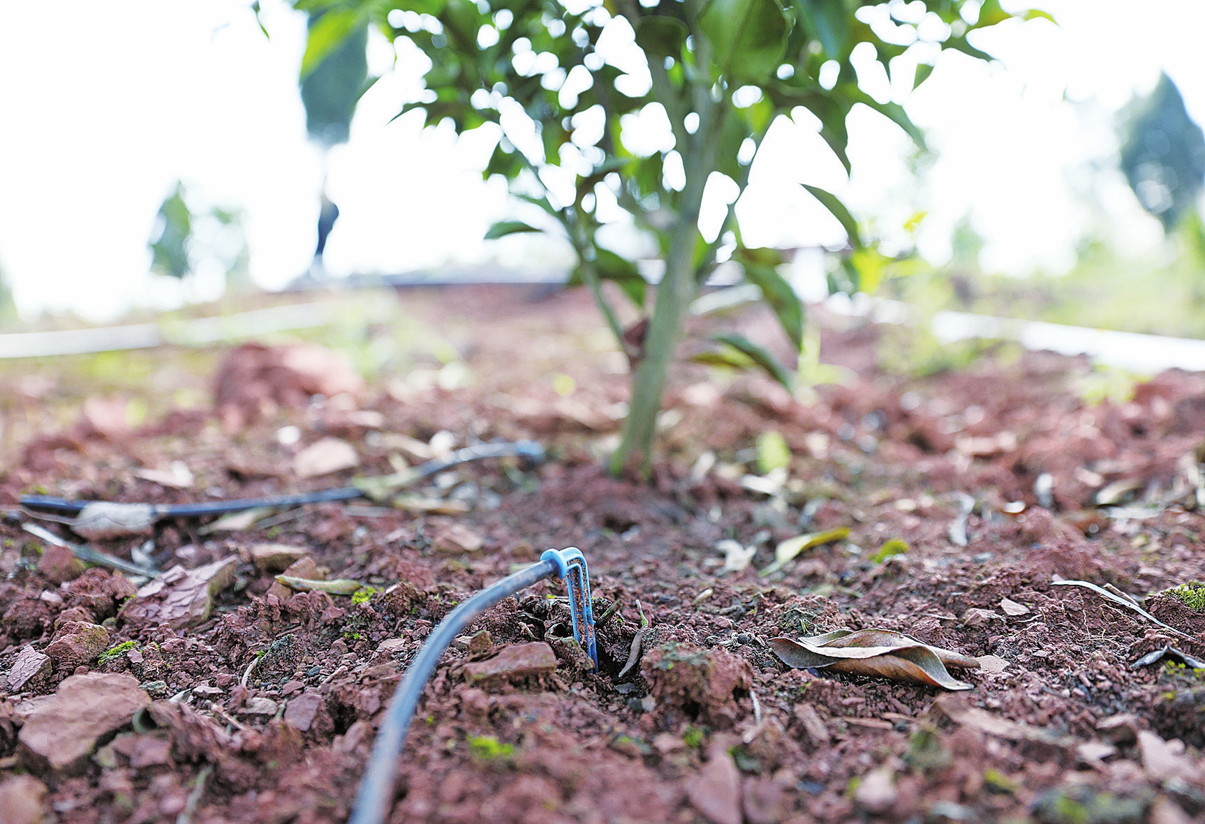 每棵柑橘树下都有一根滴管,确保每一滴水都能精准到达。